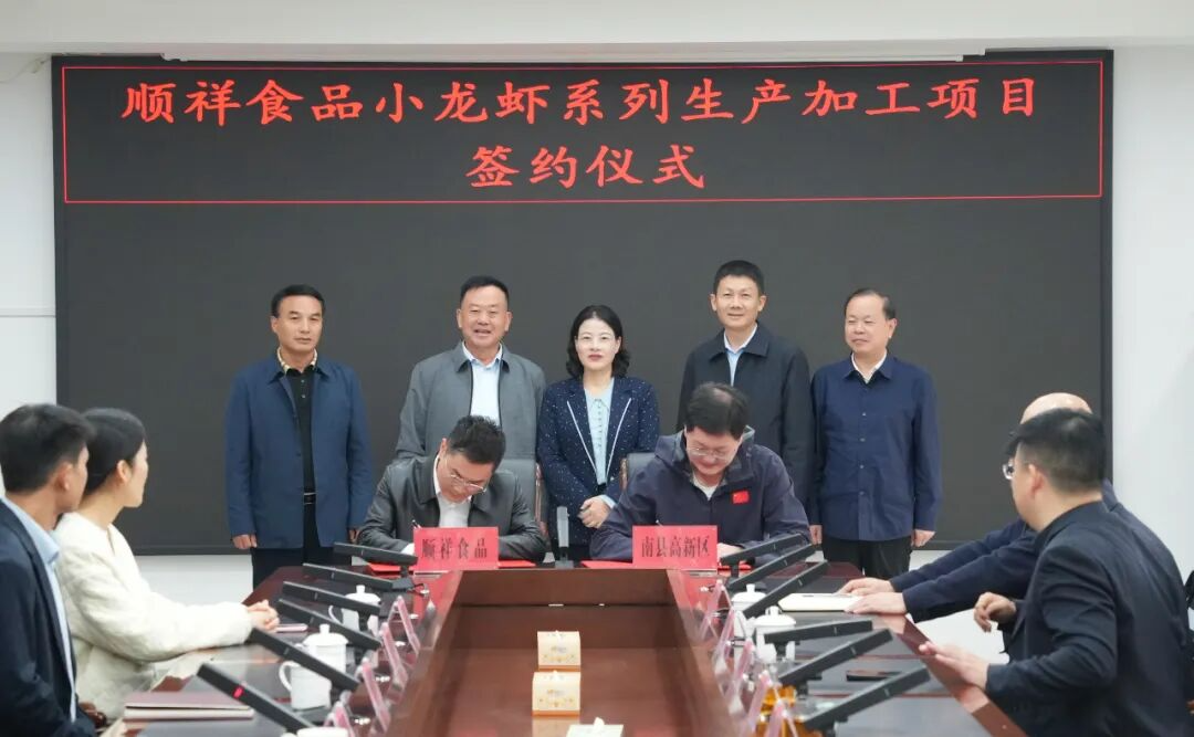 10月31日,顺祥食品小龙虾系列生产加工项目签约仪式在南县高新区举行。县委书记钟剑波,县委副书记、代理县长沈小星等共同见证。