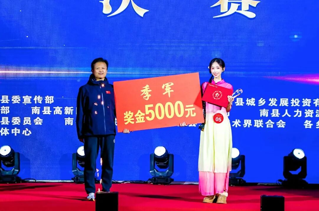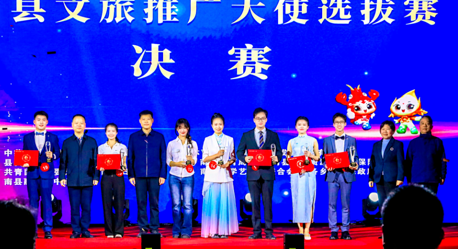 经过专业评审,最终邓卓、何洁、杨梦萧分别荣获冠、亚、季军。现场同步揭晓最佳才艺奖、最佳人气奖、最佳创意奖、最佳潜力奖、最佳表现力奖、最佳传播奖、最佳口才奖7个单项奖。其中,冠军邓卓荣膺“南县金牌文旅推广大使”称号,亚、季军及单项奖获得者被授予“南县文旅推广大使”称号,正式肩负起宣传推介南县文旅的使命,以青春力量助力南县文旅走向更广阔的舞台。