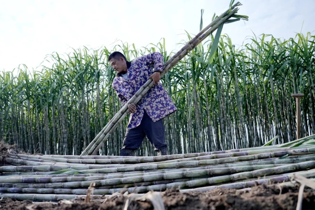 “这窖藏的手艺,是祖辈传下来的‘土智慧’!”正在封窖的种植户张建彪抹了把额头的汗珠,脸上满是笑意,“甘蔗下窖后能更好锁住水分和糖分,等春节前挖出来,甜度比刚收割时还足,一斤能多卖好几毛钱哩!”作为港口村甘蔗种植的老把式,张建彪见证了甘蔗产业的变迁:从前,村里的甘蔗大多在本地集市售卖,销路窄、价格稳;如今,乡里不仅帮着举办甘蔗节,还扶持电商直播、打通物流通道,带着泥土清香的甘蔗通过快递车,甜到了北京、上海、广东等全国各地的餐桌上。