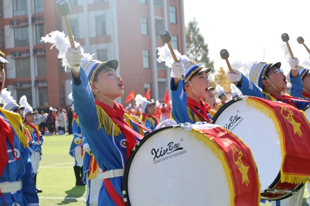 比赛现场,各参赛队伍身穿统一服装,队列整齐、精神昂扬,在音乐指挥的精准引领下,雄壮的号角声、清晰的鼓点声、协调的镲音与富有创意的队形变换完美融合,将整个赛场化为风采与活力竞相绽放的舞台。