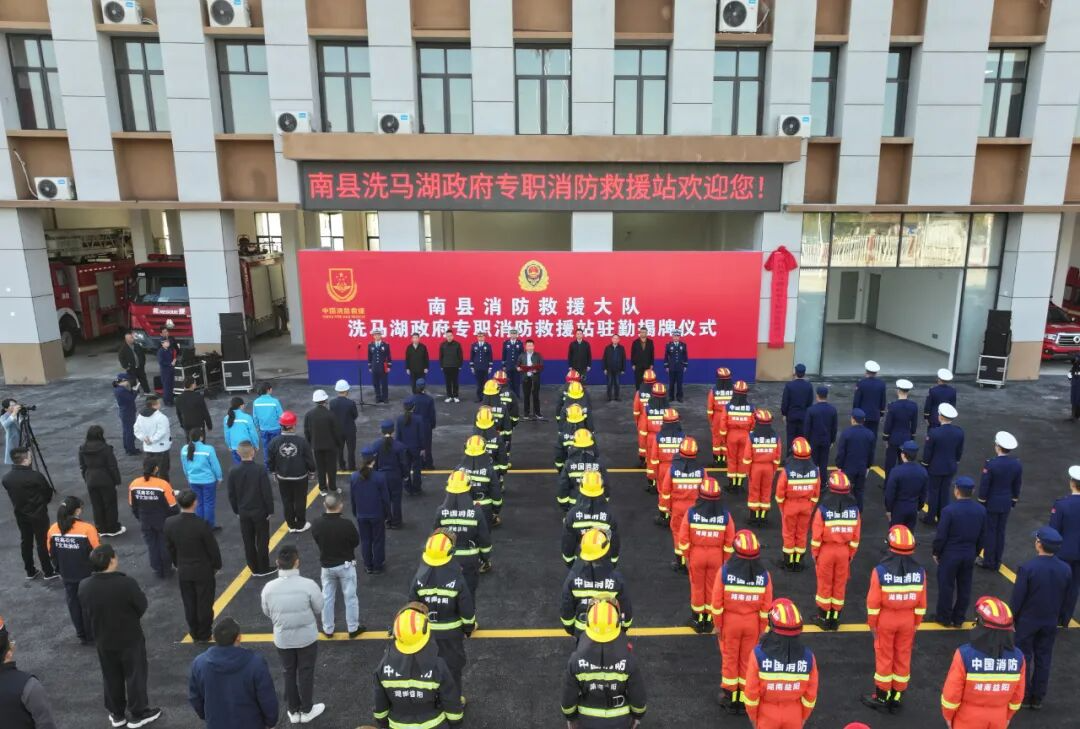 11月28日,南县洗马湖政府专职消防救援站举行揭牌仪式,标志着全县第四个消防救援站正式投入驻勤。