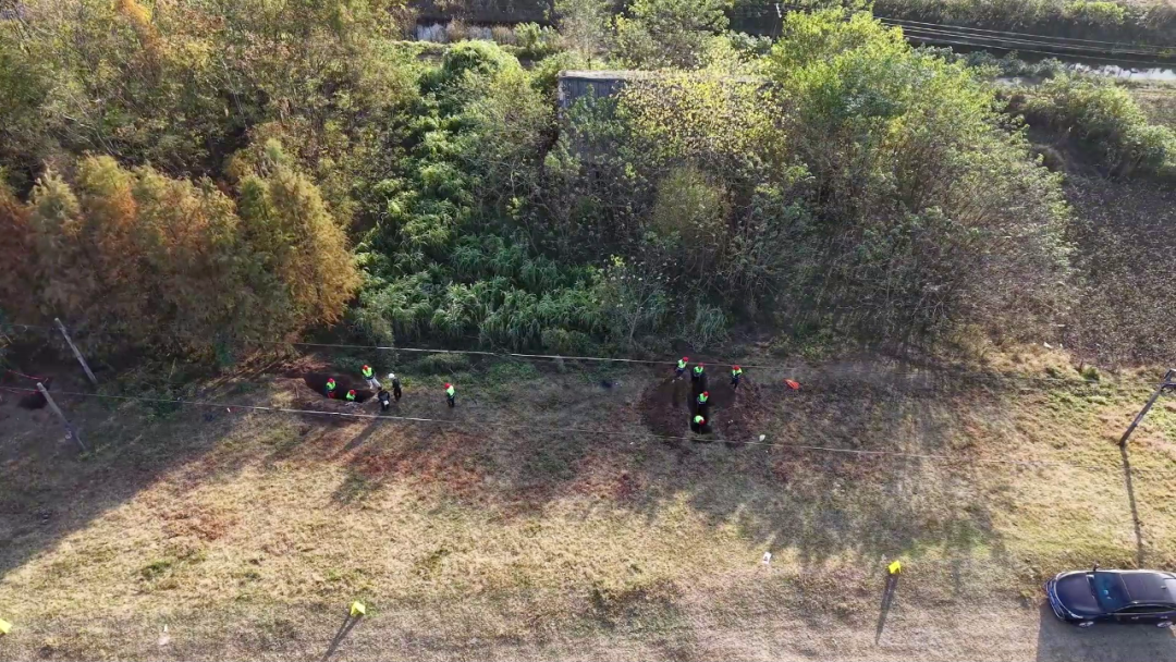 12月9日下午,记者来到明山头镇中湖子口堤段的一处背水坡看到,工作人员正在进行白蚁巢穴的开挖回填工作。