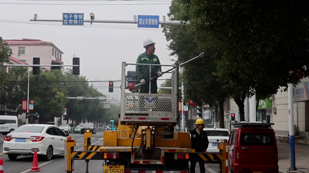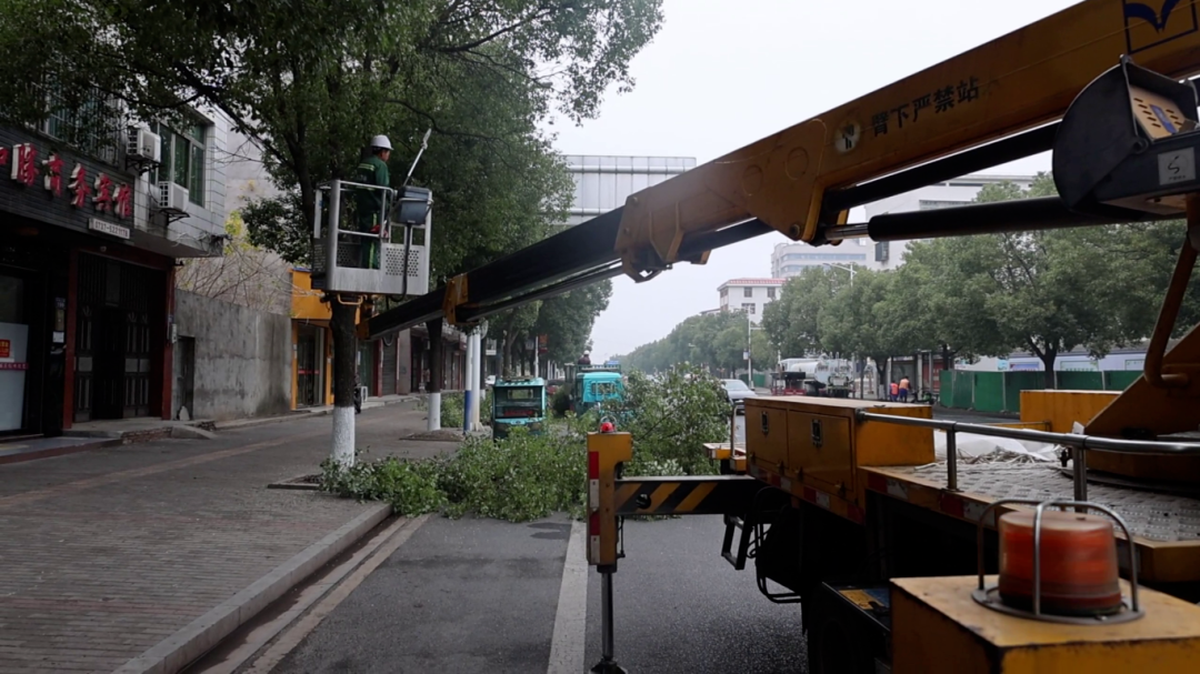 在沿湖北路,伴随着油锯的阵阵轰鸣,一辆高空作业云梯车缓缓升起,稳稳将几名工人送至树枝间,工人们系紧安全绳,手持专业修剪工具,对遮挡交通指示牌、警示牌的树枝进行精准裁切。除了清理多余树枝,工作人员还按照作业规范,逐一为树木涂刷石灰剂,搭建防风罩,帮助树木抵御严寒、防范虫害。