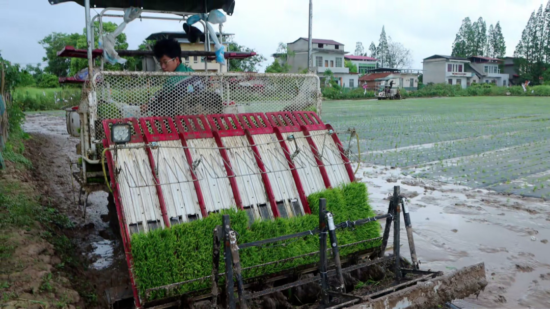 在荣福村稻田里,插秧覆膜一体机平稳前行,一次性完成秧苗栽植、全生物降解膜铺设作业,秧苗规整栽种,地膜整齐覆盖于稻田表层,全程高效便捷。这种早稻全生物降解膜覆盖种植技术,有效解决了传统早稻种植所面临的杂草丛生、水资源浪费、肥料利用率低、春季低温长势慢等难题,通过为稻田铺设全生物降解膜,打造适宜早稻生长的田间“微环境”,不仅实现节水、节肥、减药、增效的多重目标,更推动当地农业生产从粗放式向精细化、绿色化转型。
