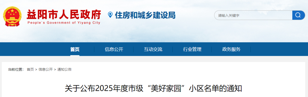 活动开展以来,各县市区高度重视、积极响应,在党建引领、推动物业管理融入基层治理、建立协商议事机制、发动居民参与共建共治共享、提升物业服务质量等方面做了大量工作,涌现出一批服务优良、管理规范、环境宜居、特点鲜明、群众满意的美好家园典型案例。通过项目自荐、各县市区住建部门初审、择优推荐,益阳市住建局组织实地核查、征求街道、社区、业主委员会意见,并组织集中审查的基础上,确定8个住宅小区为2025年度益阳市级“美好家园”小区,现予公布。