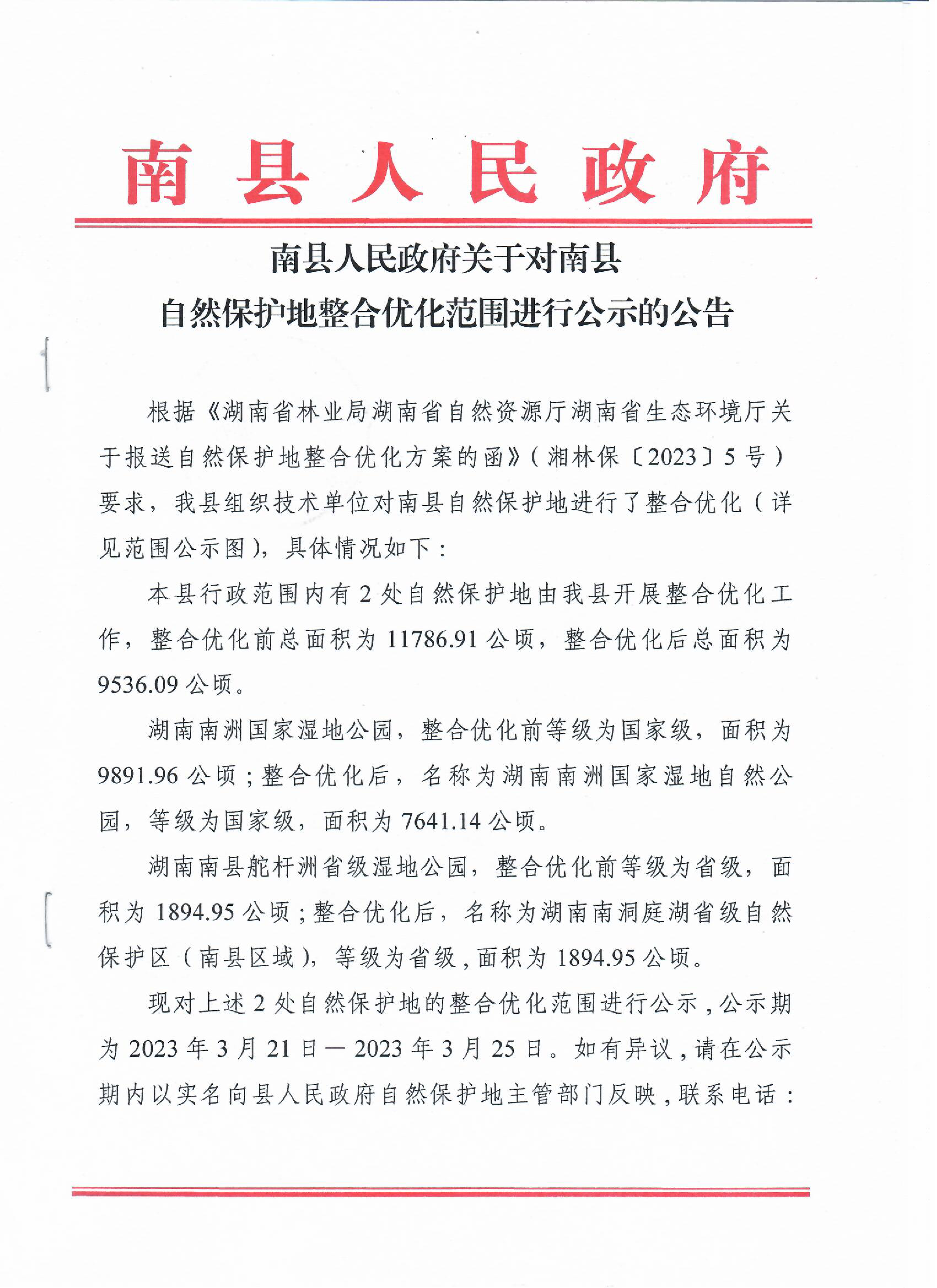 南县人民政府关于对南县自然保护地整合优化范围进行公示的公告