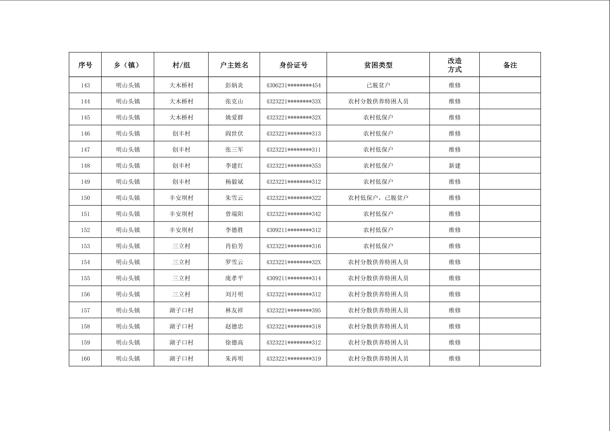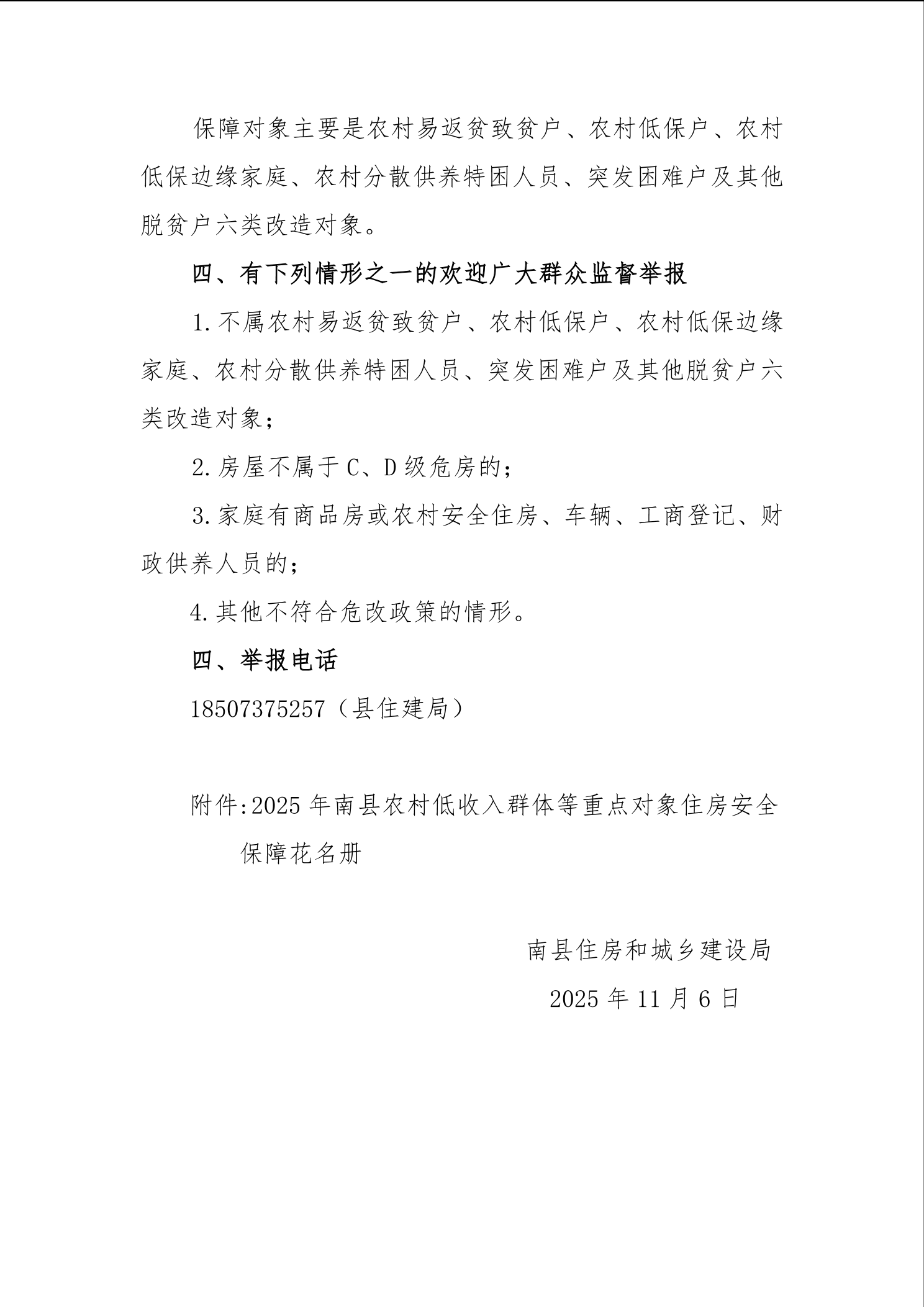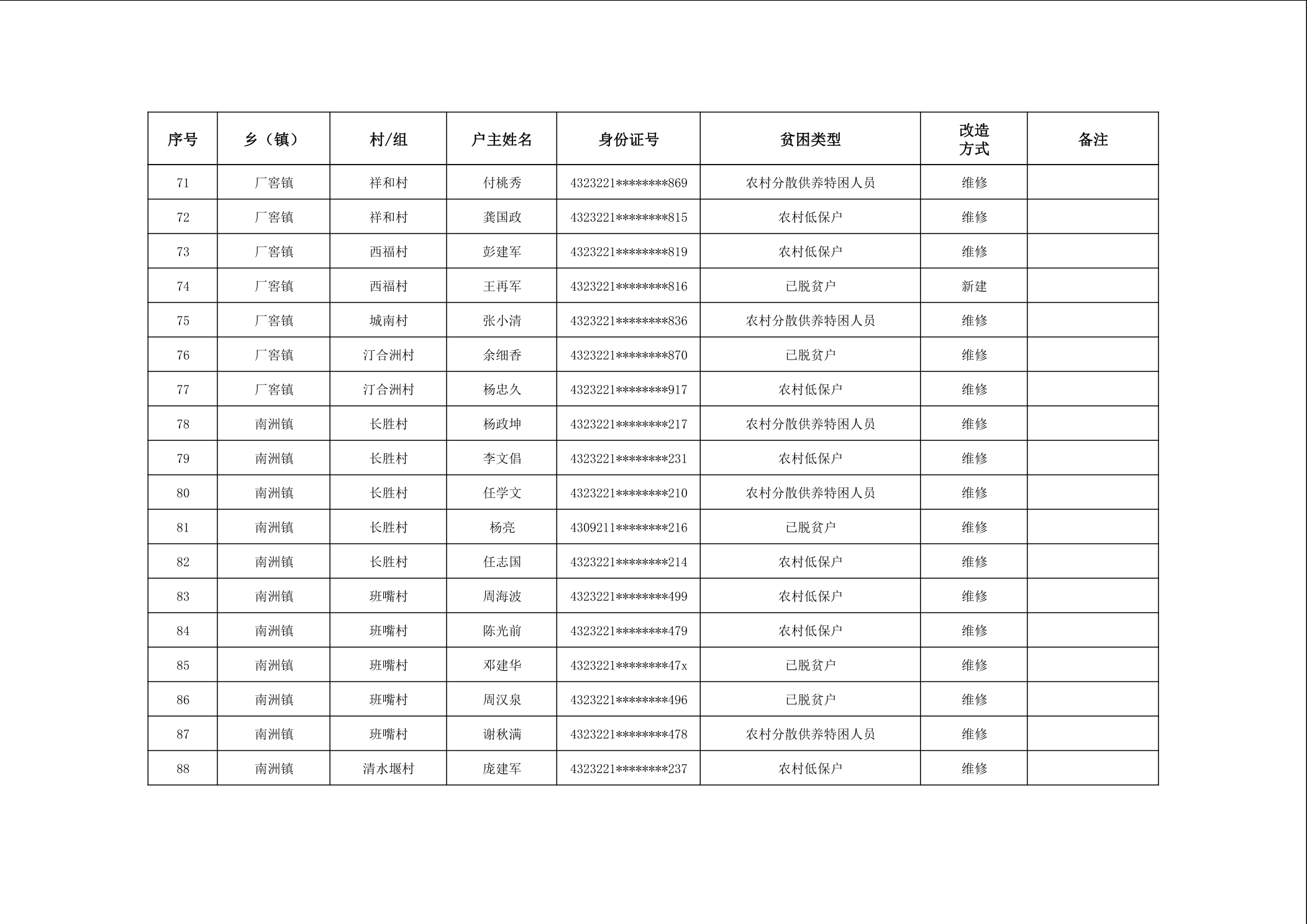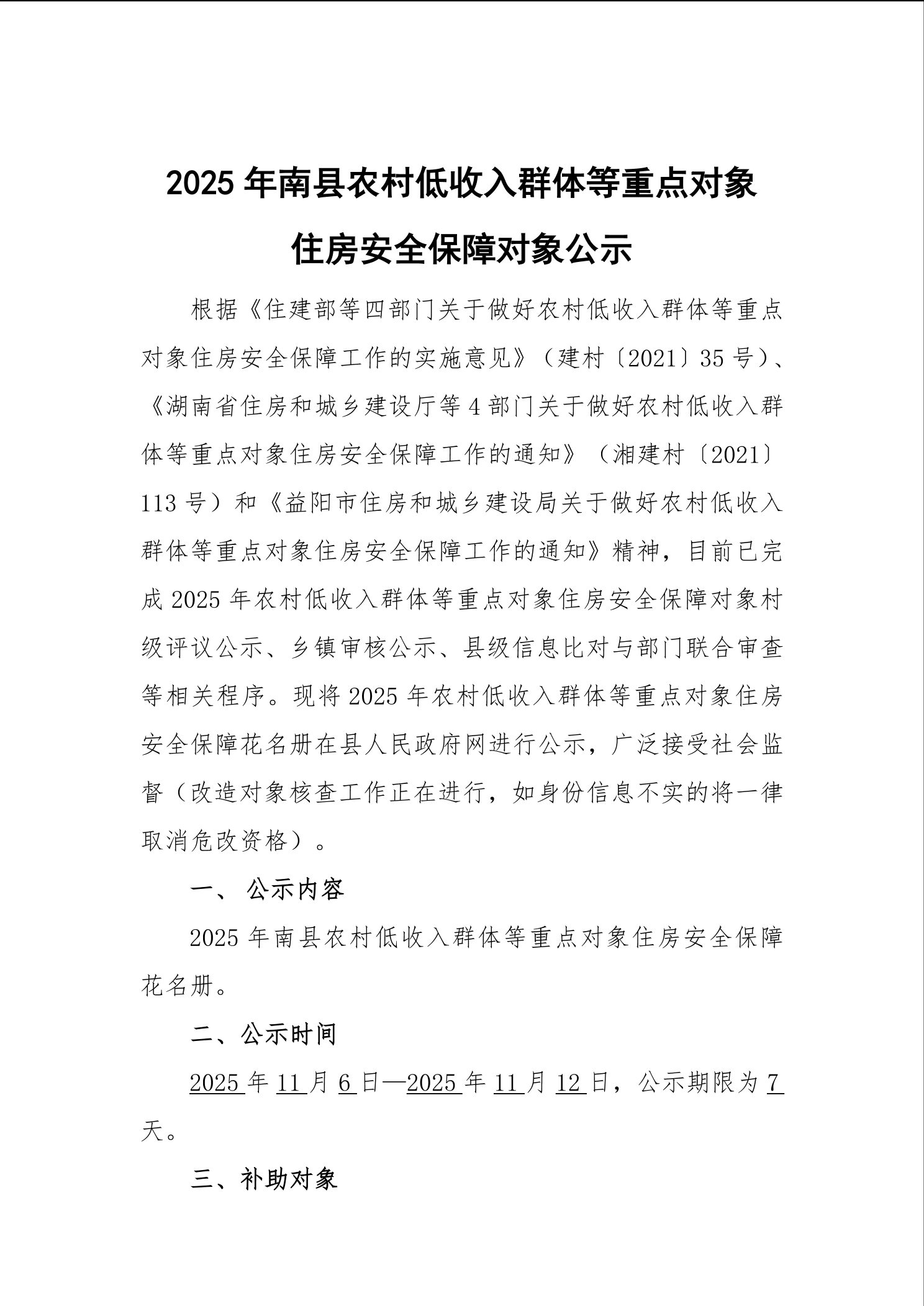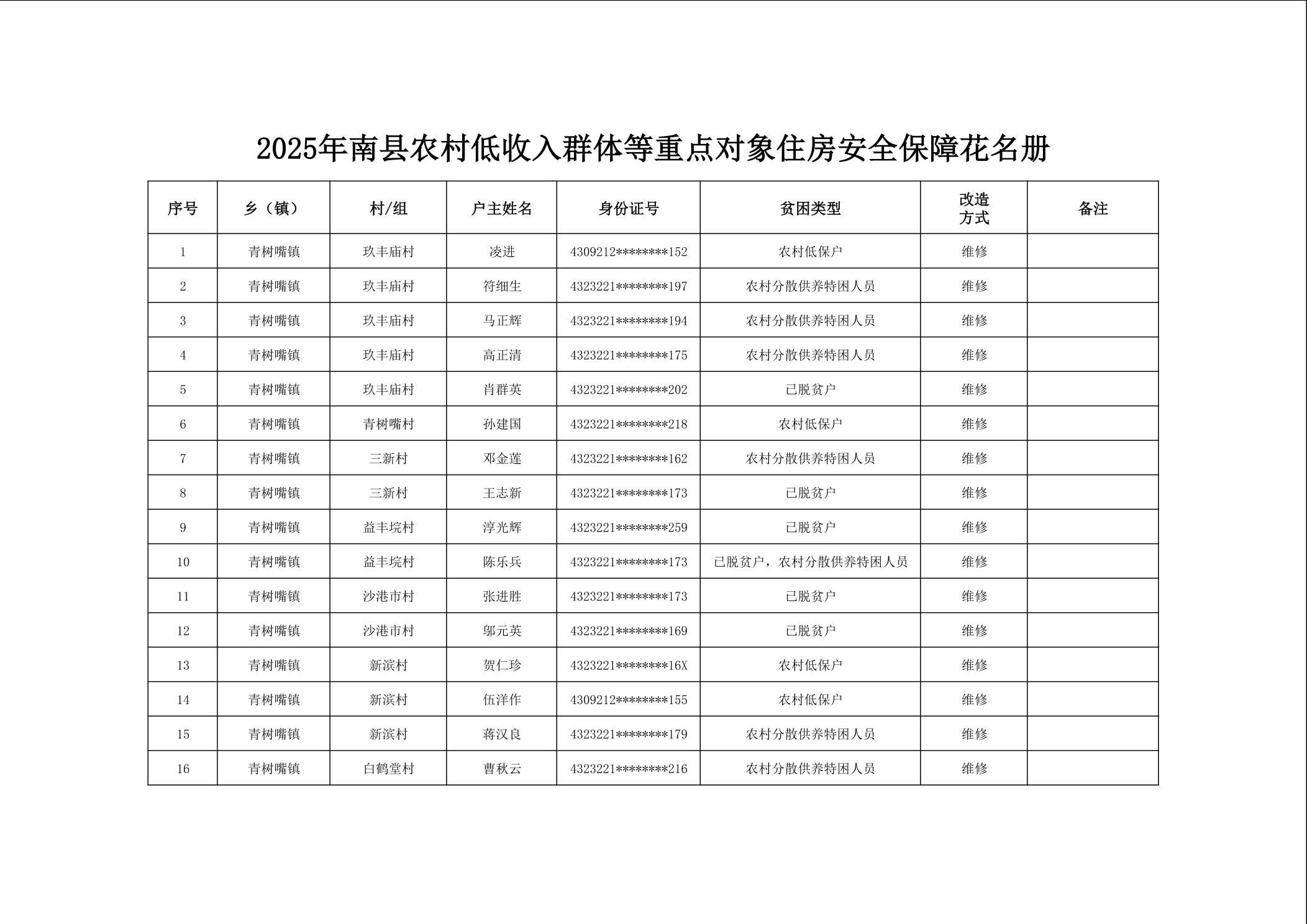 2025年南县农村低收入群体等重点对象住房安全保障对象公示