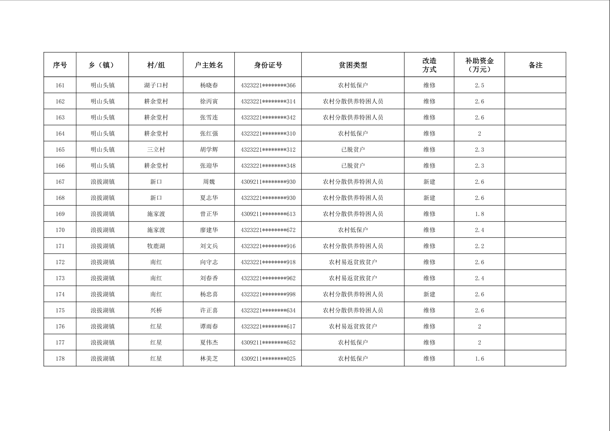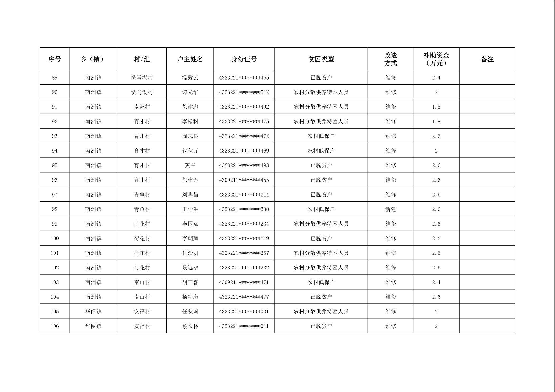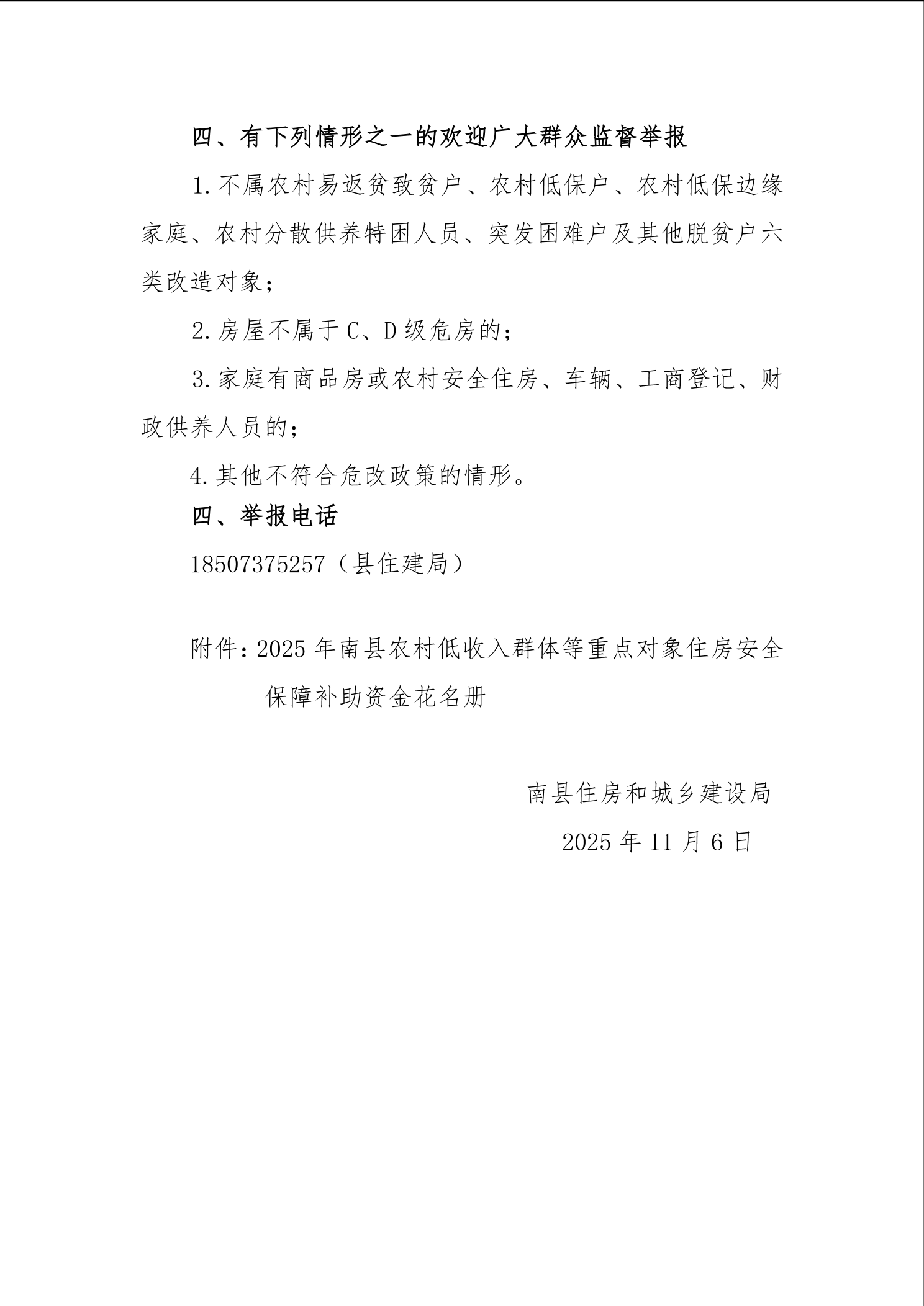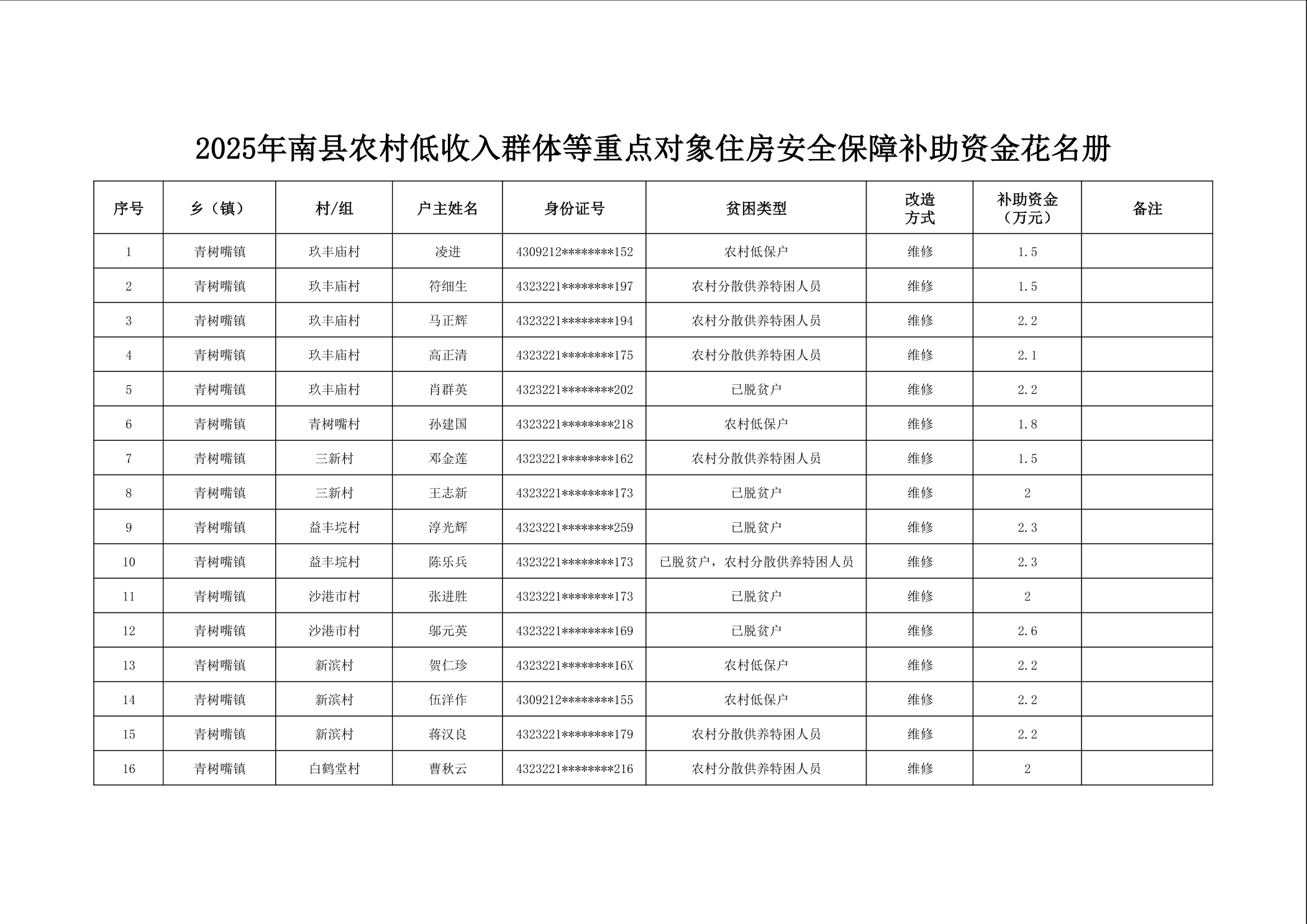 2025年南县农村低收入群体等重点对象住房安全保障补助资金公示