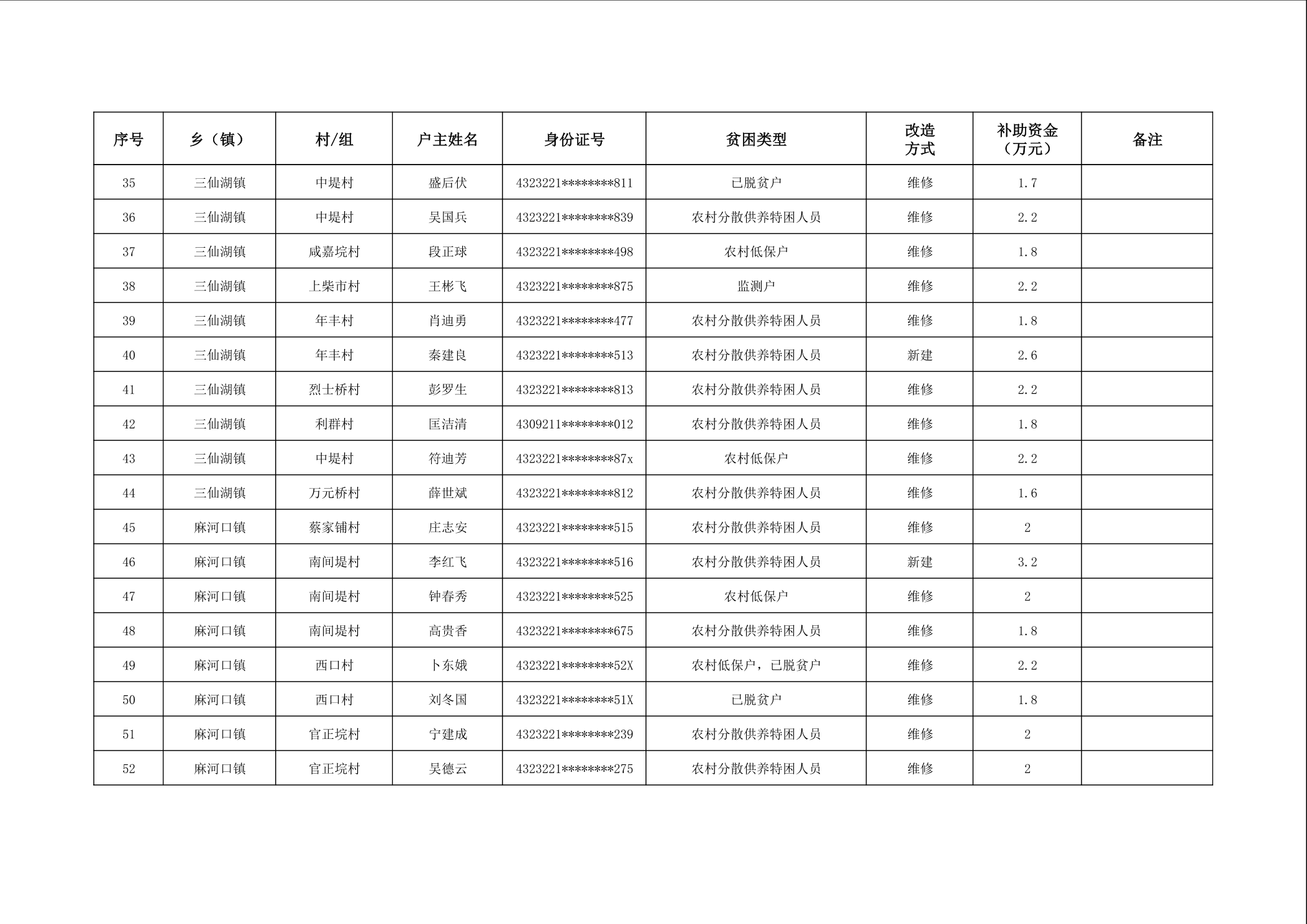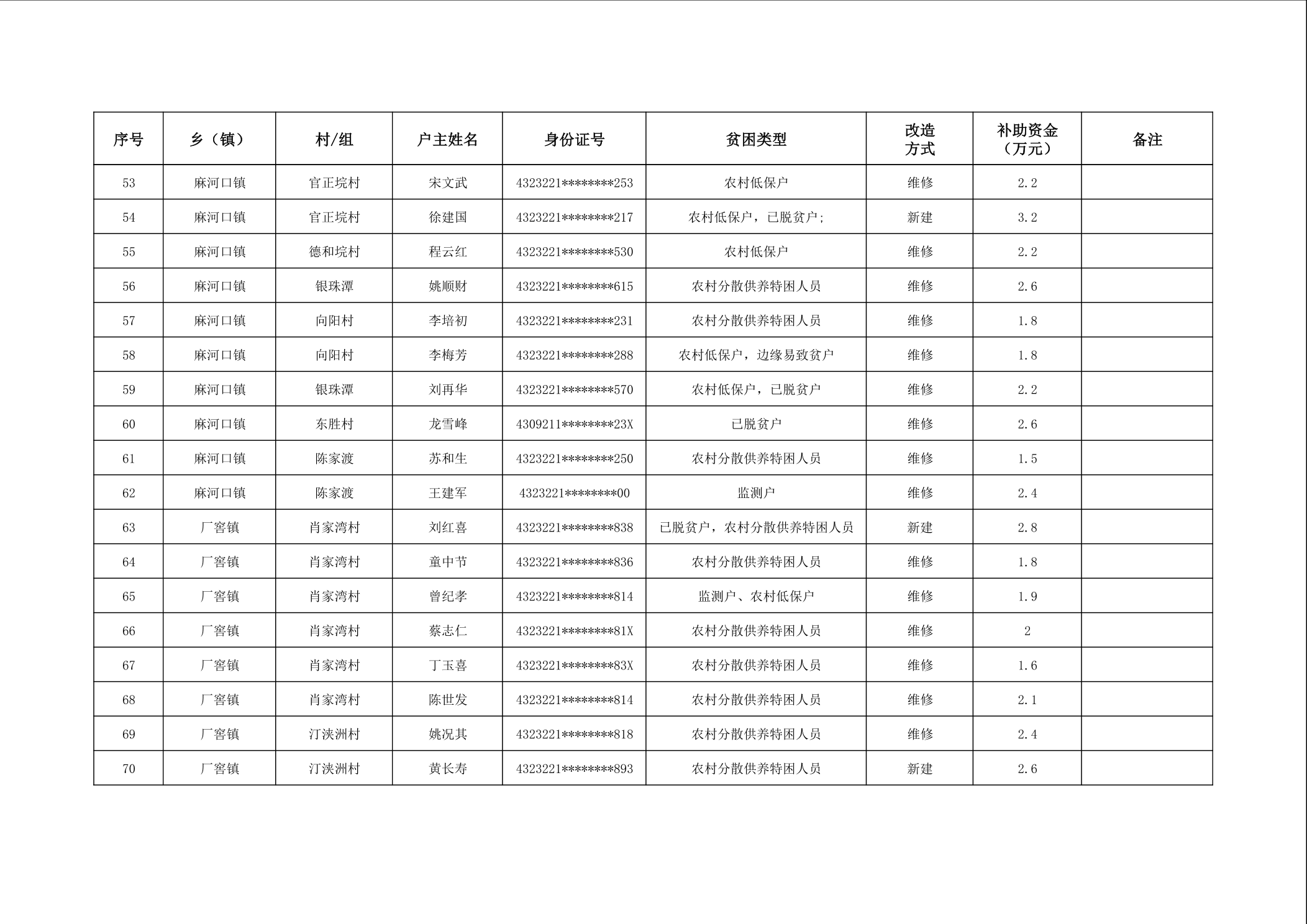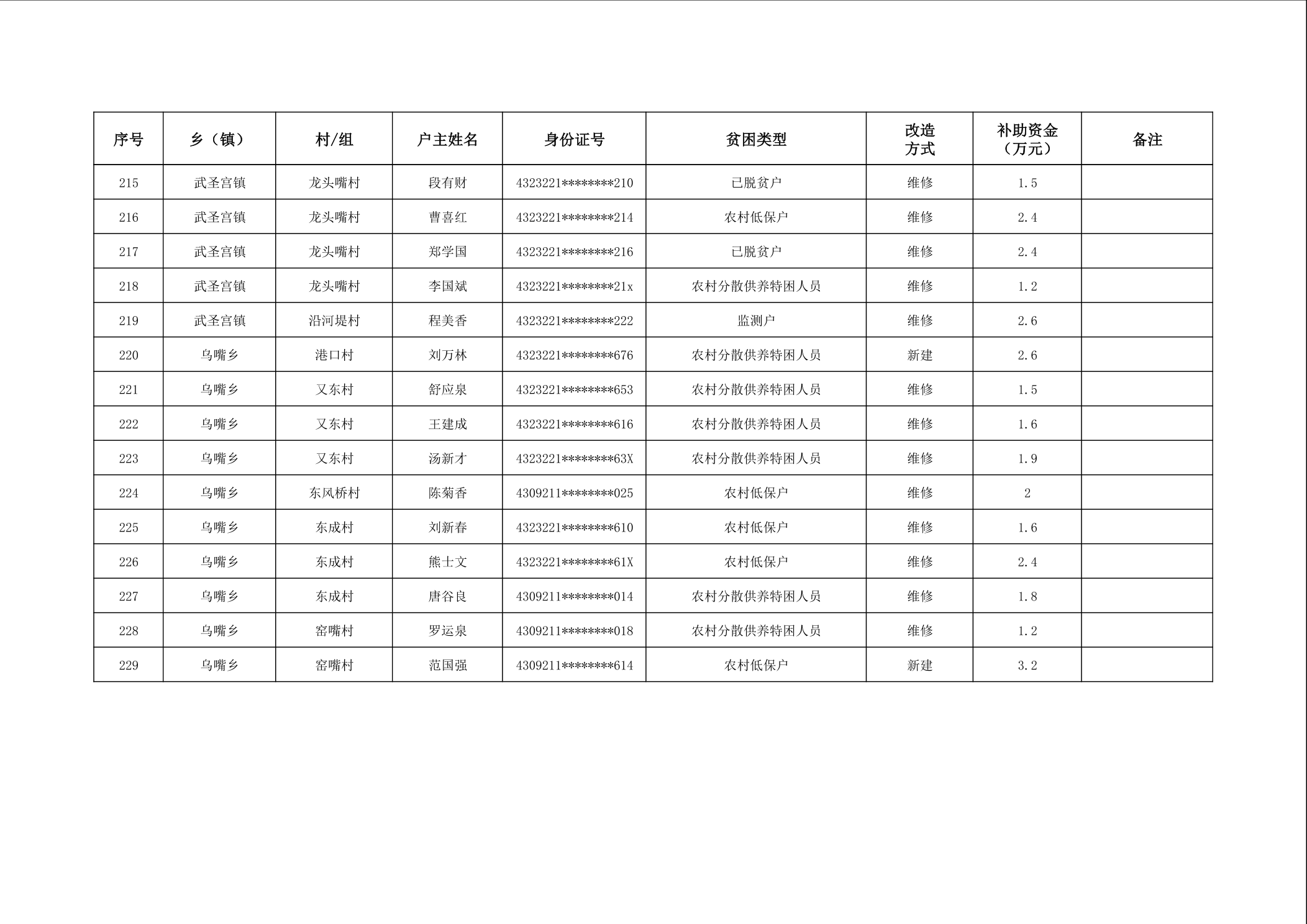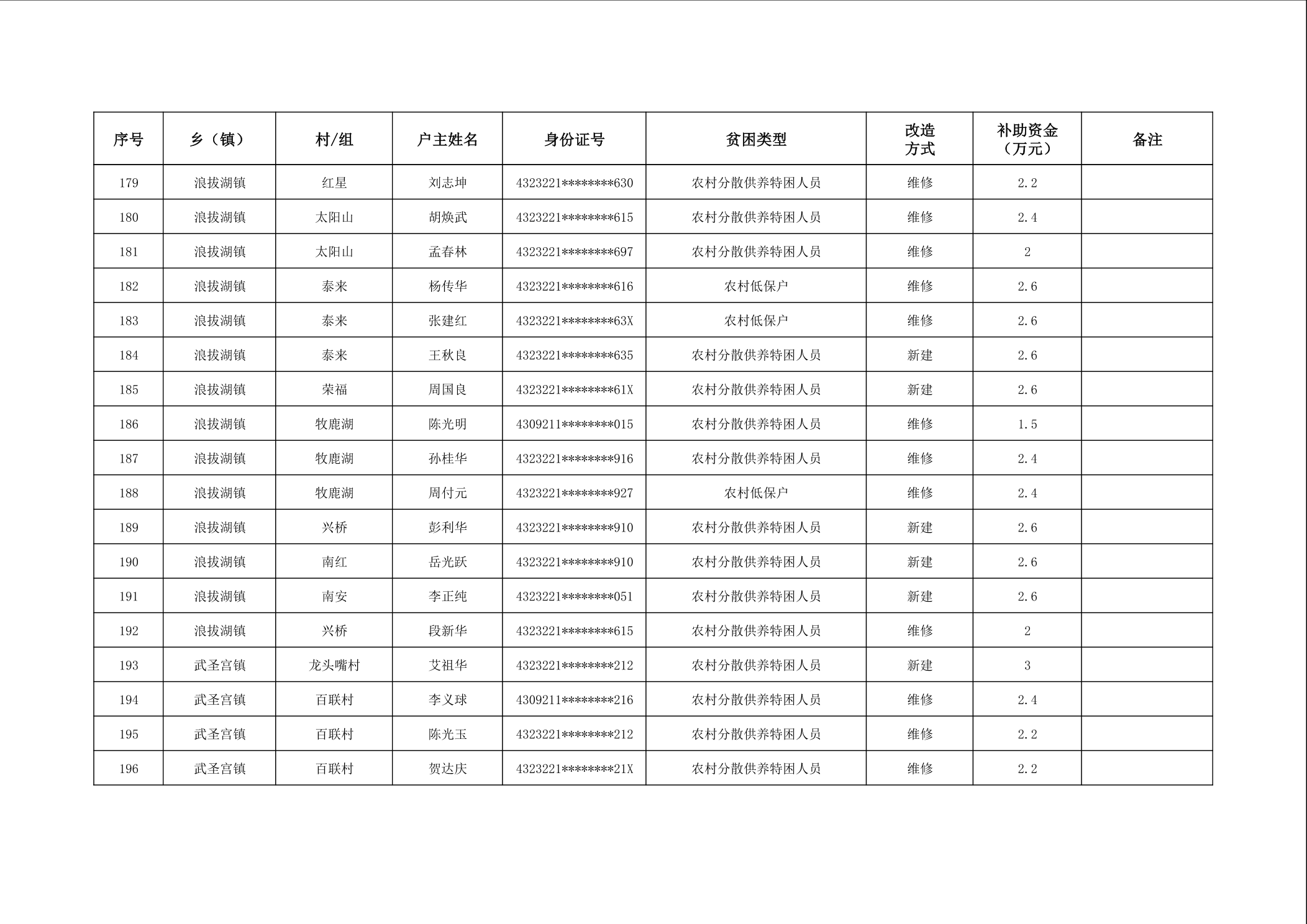2025年南县农村低收入群体等重点对象住房安全保障补助资金公示