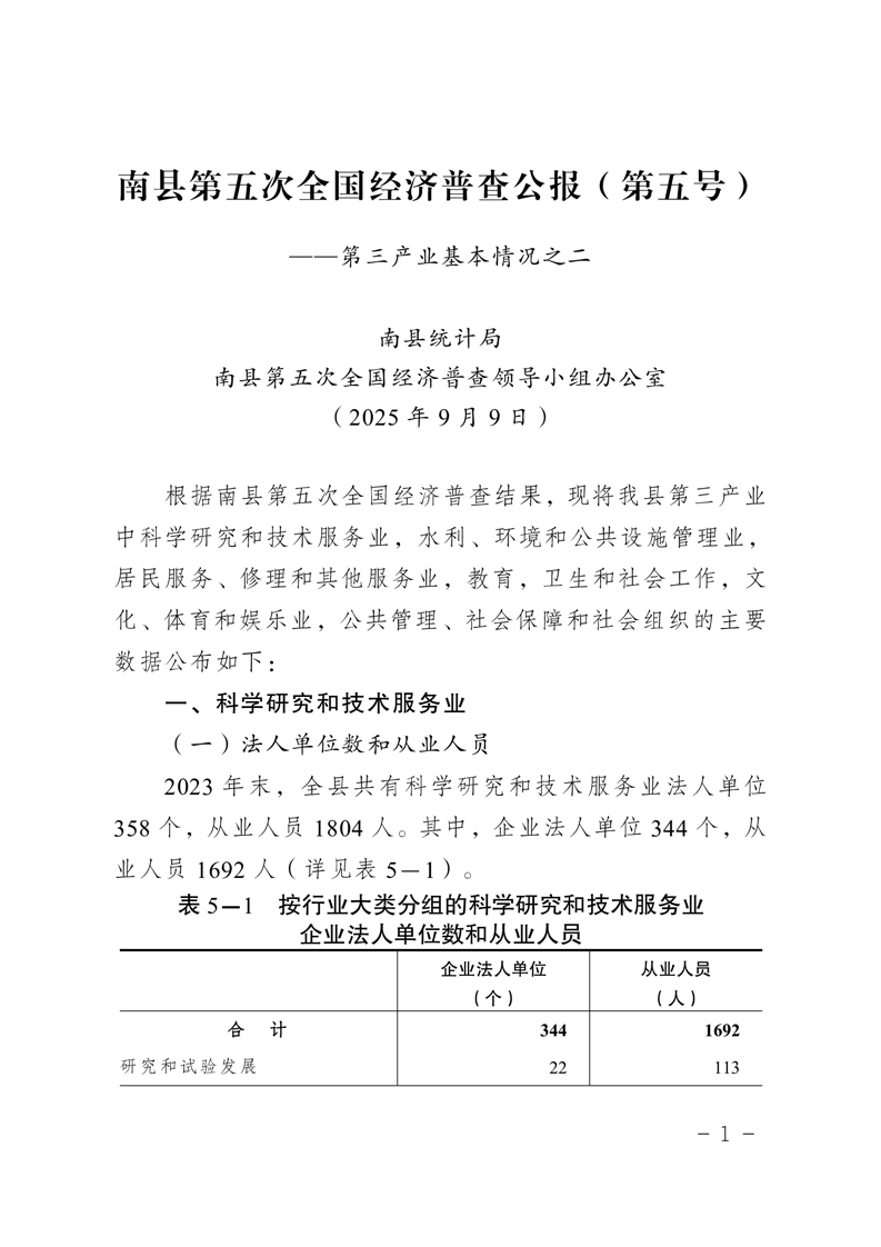 南县第五次全国经济普查公报(第五号)