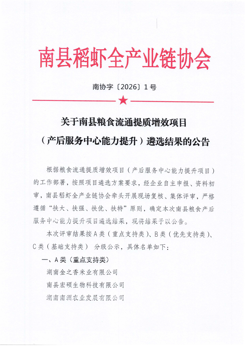 关于南县粮食流通提质增效项目(产后服务中心能力提升)遴选结果的公告