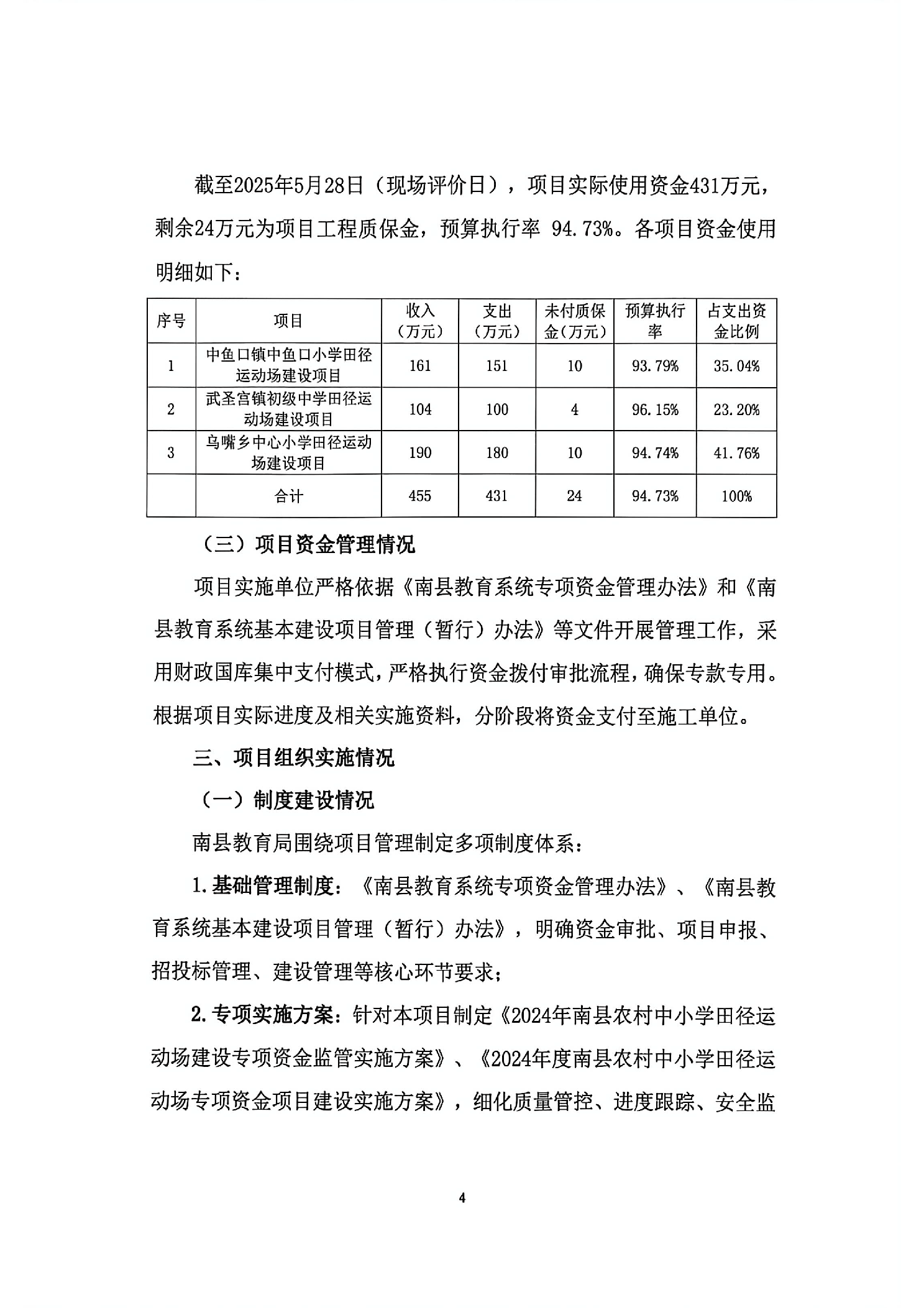 2024年度南县农村中小学运动场建设项目绩效评价报告