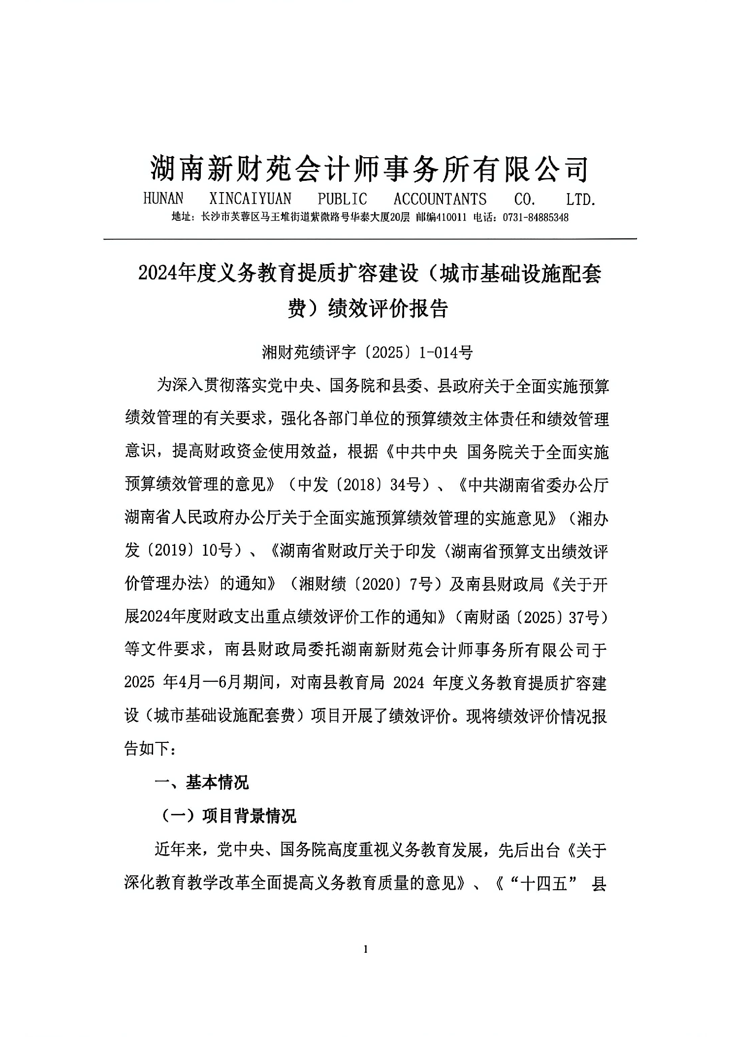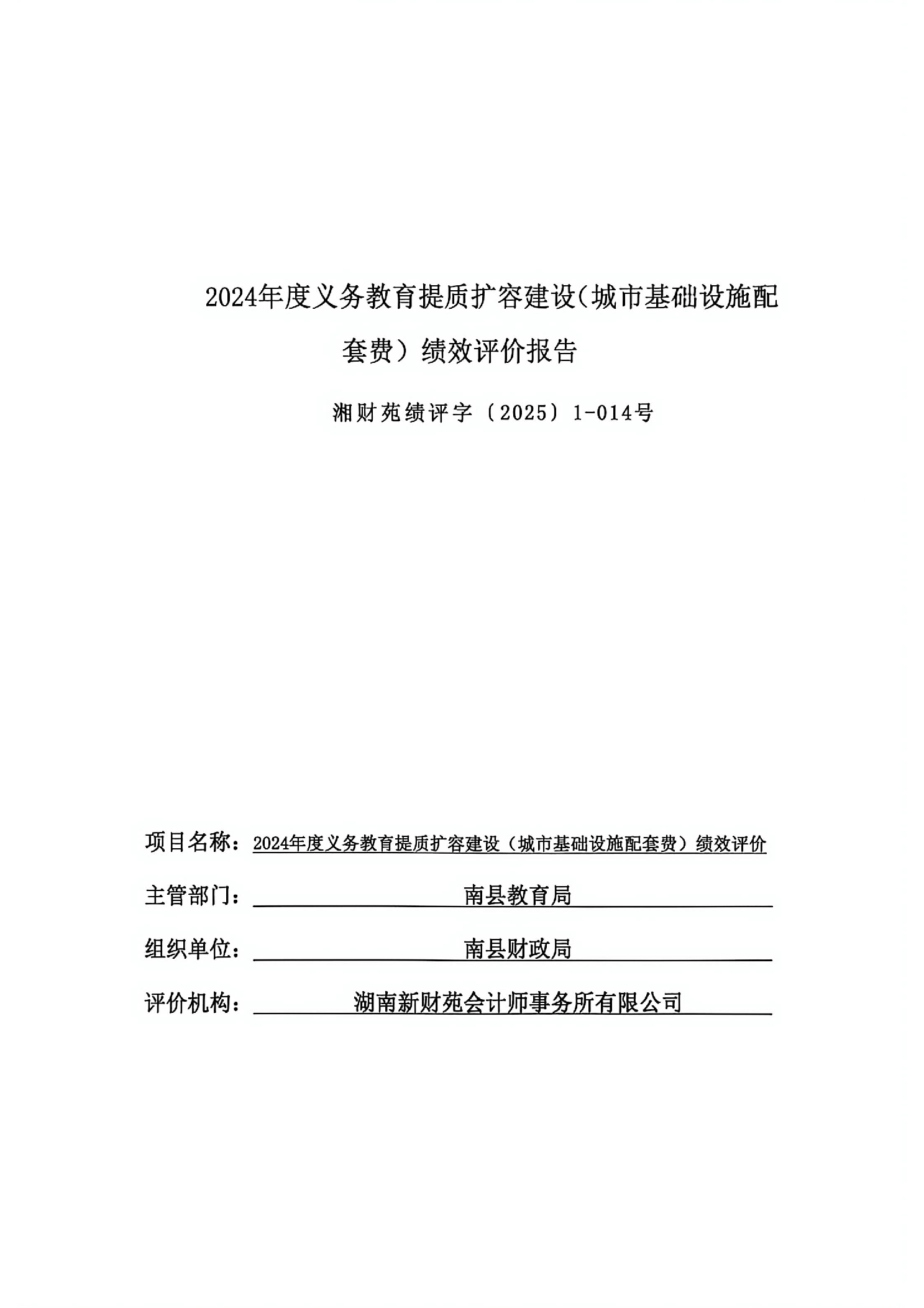 2024年度义务教育提质扩容建设(城市基础设施配套费)绩效评价报告