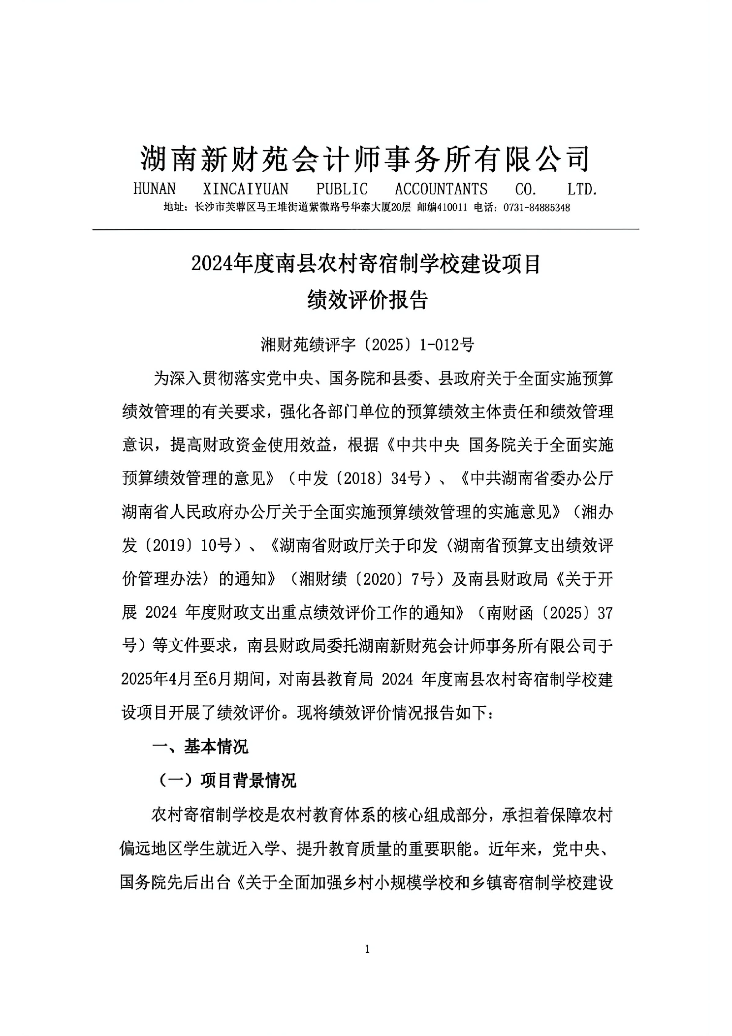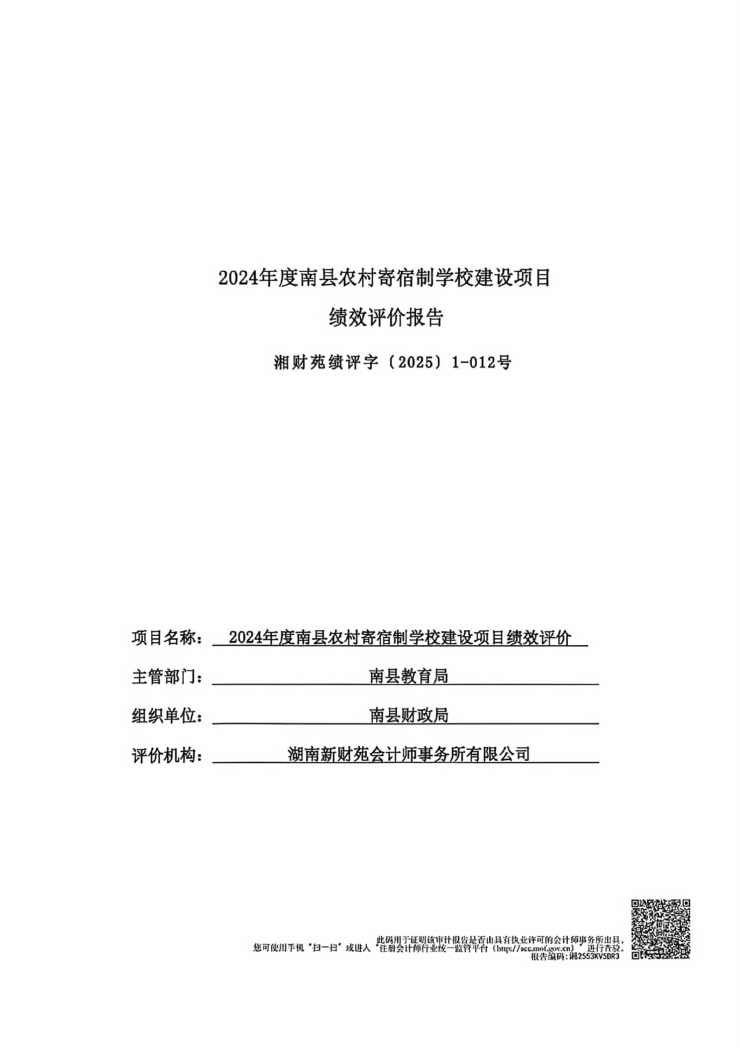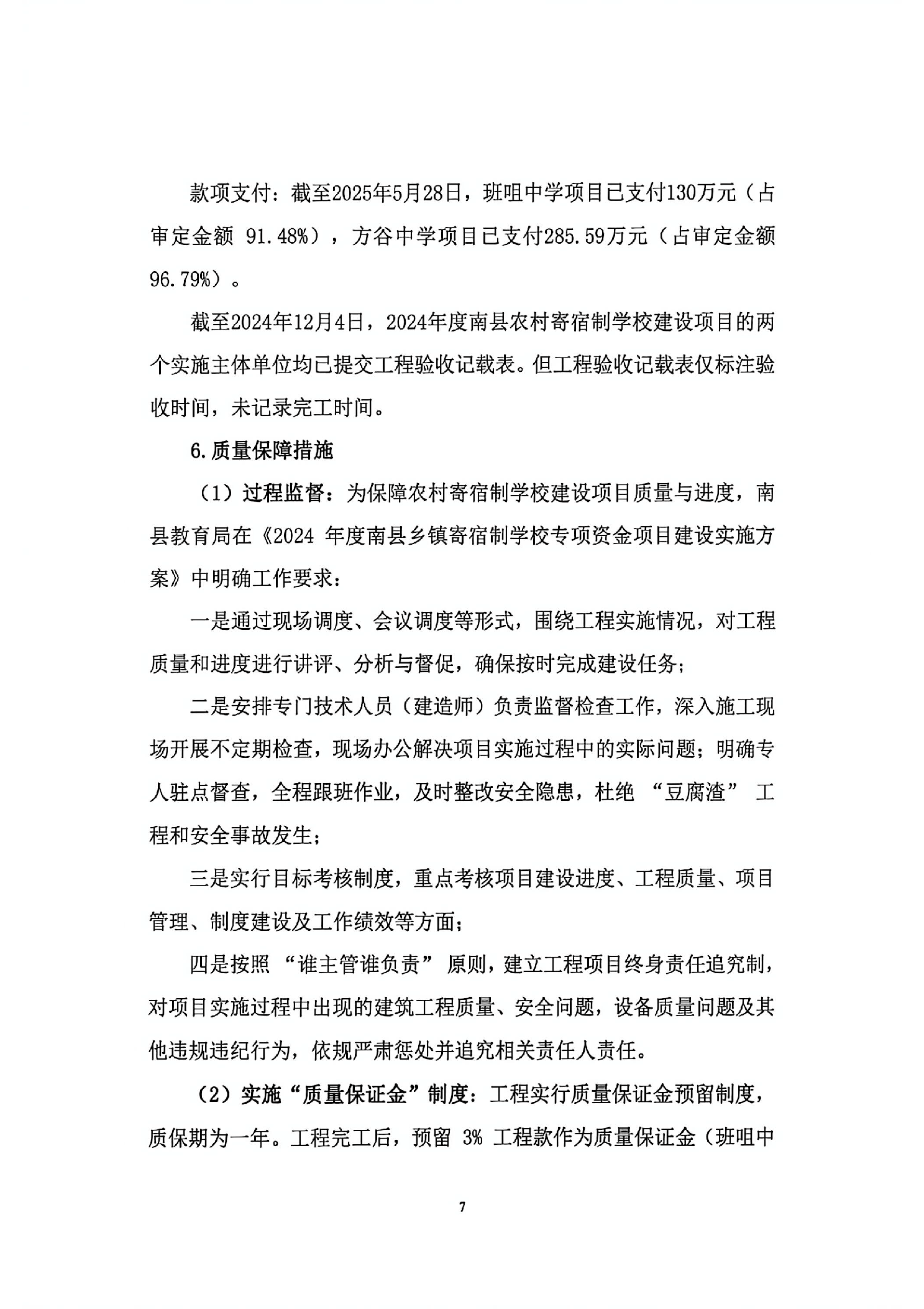 2024年度南县农村寄宿制学校建设项目绩效评价报告