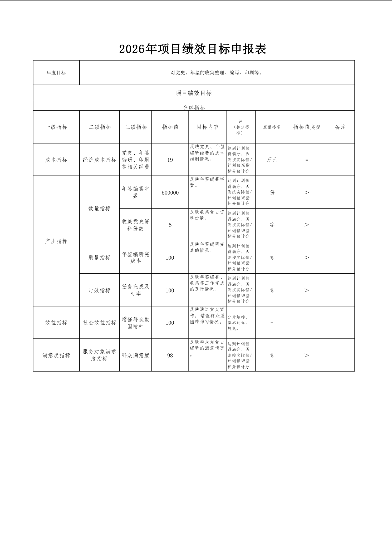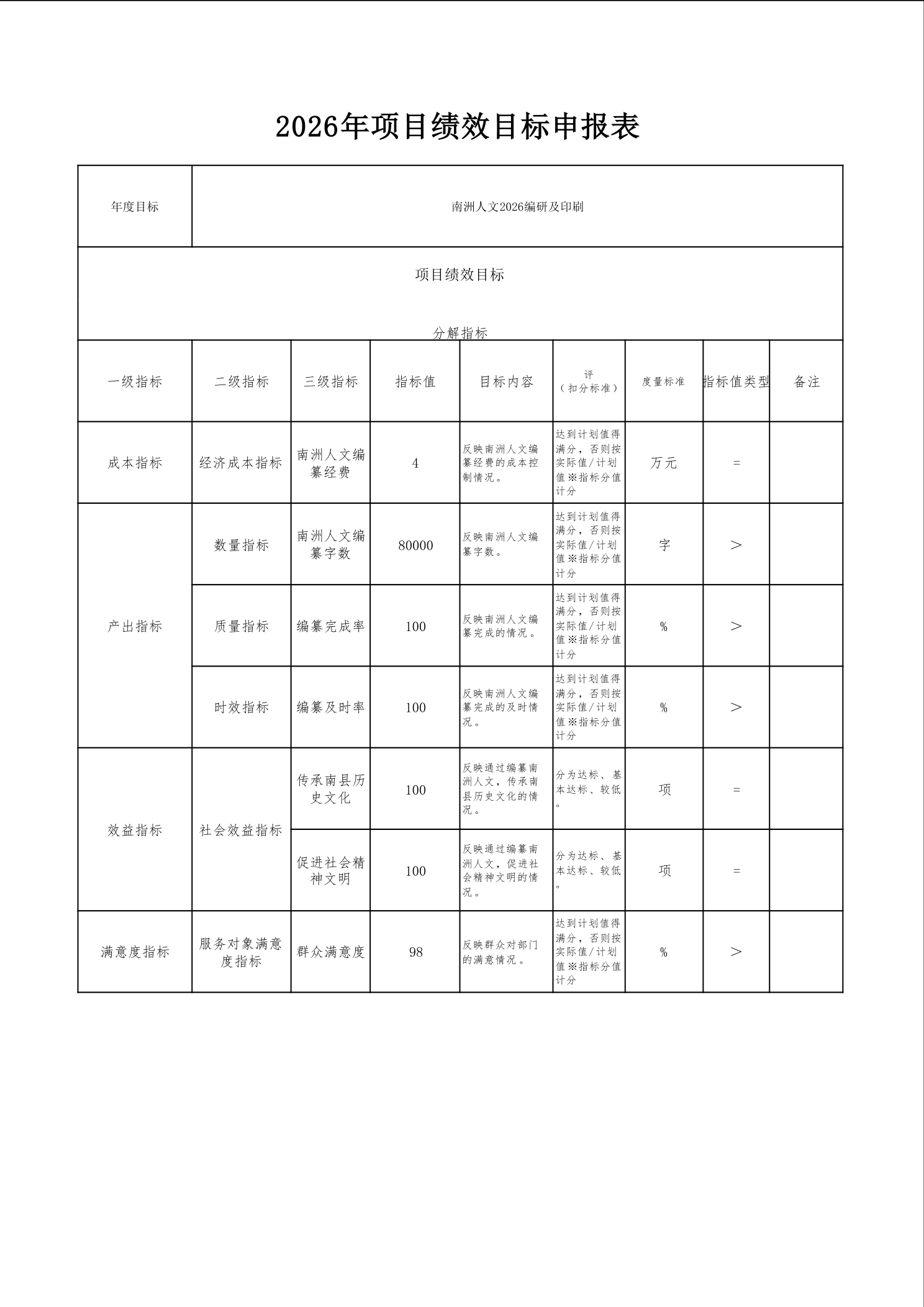 2026年项目绩效目标申报表