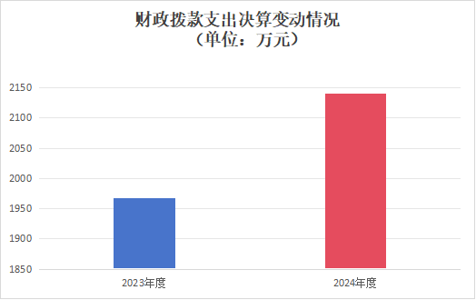 2024年度财政拨款 支出2141.99万元,占本年支出合计的84.03%。与上年相比,财政拨款支出增加174.86万元,增长8.89%,主要原因是文体活动增加。