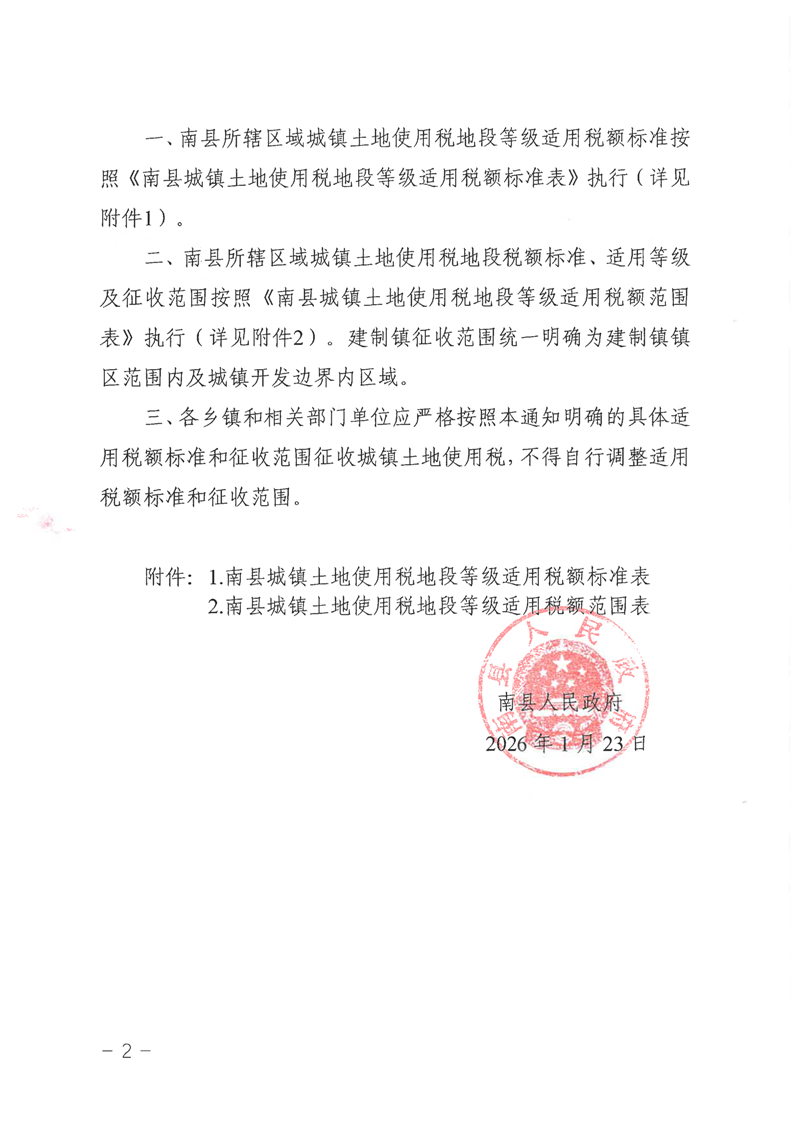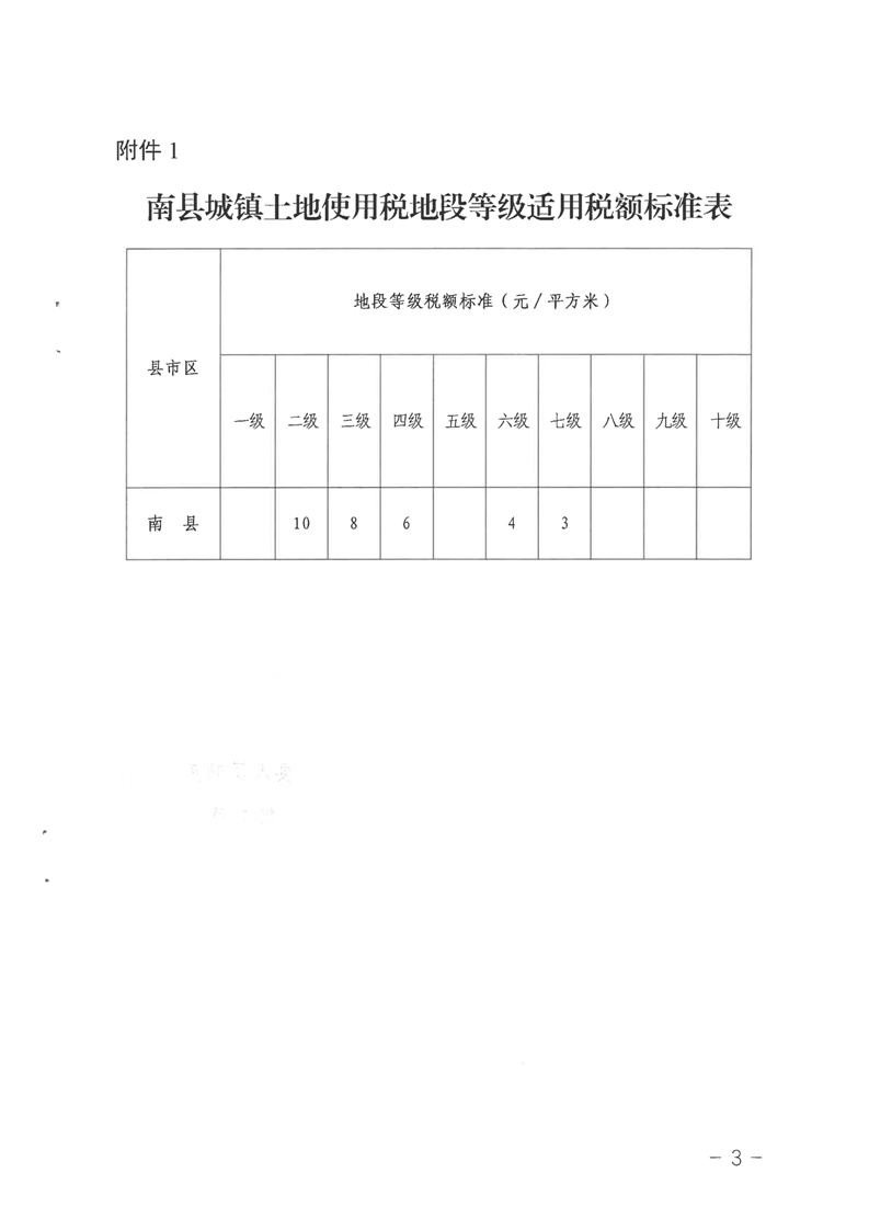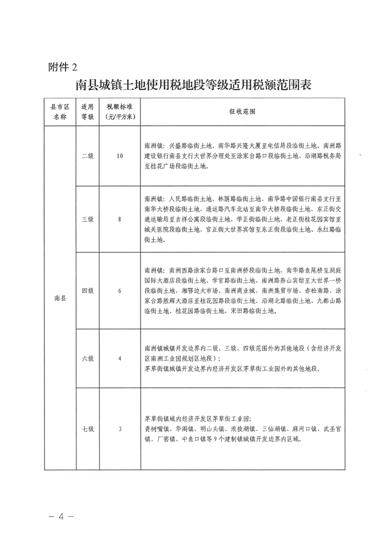 关于南县城镇土地使用税地段等级适用税额标准和征收范围调整的公告