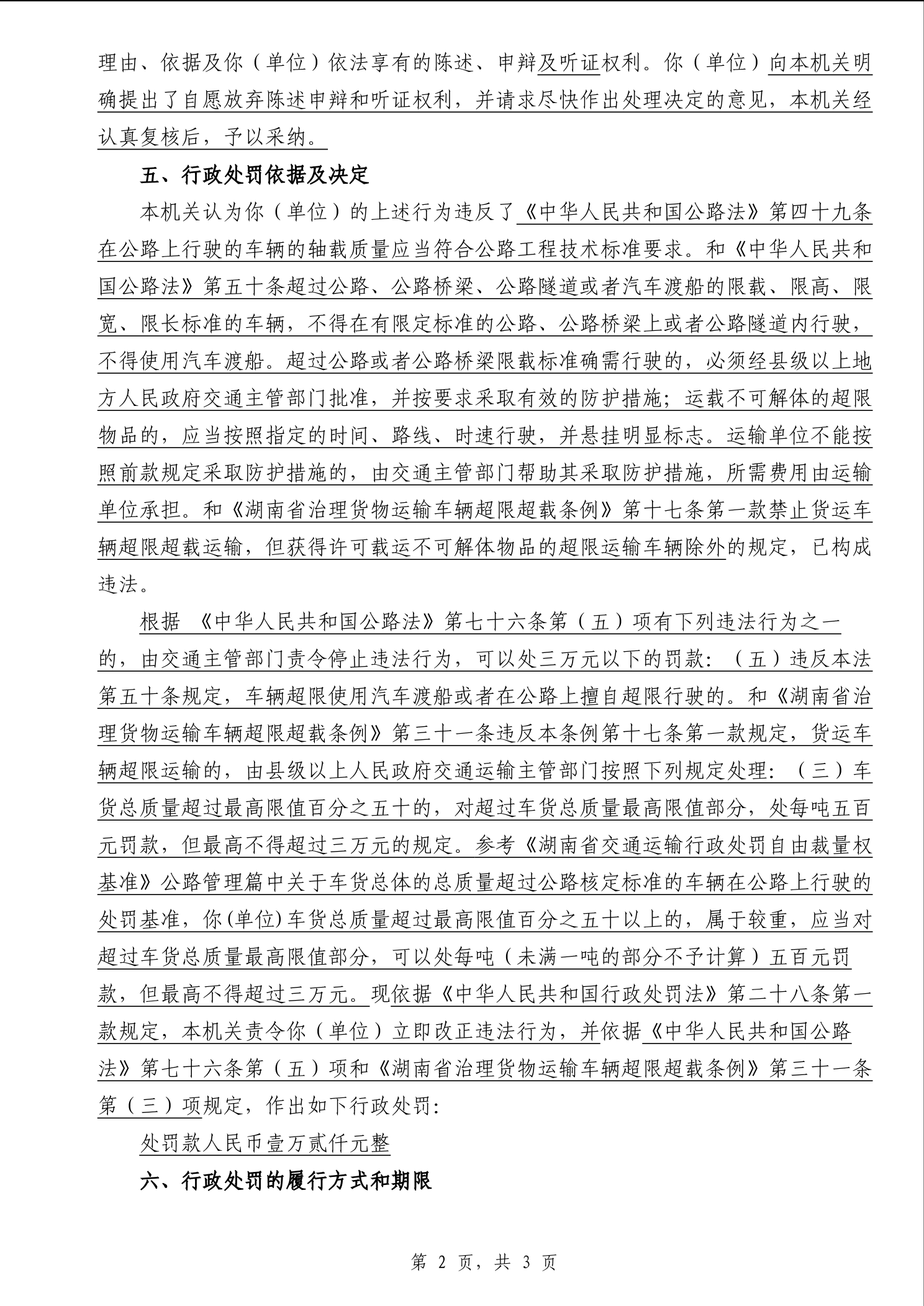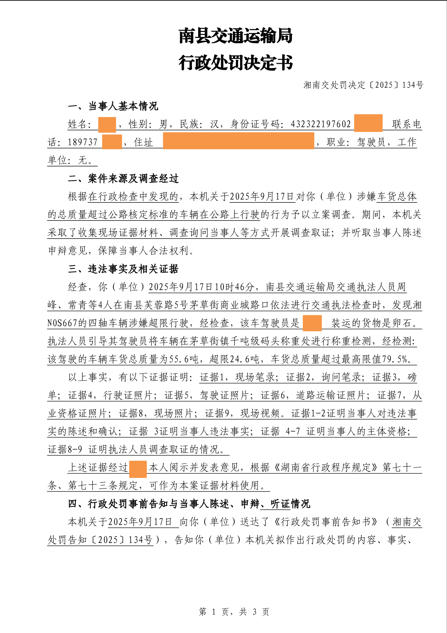 南县交通运输局行政处罚决定书湘南交处罚决定〔2025〕134号