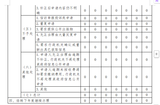 三、收到和处理政府信息公开申请情况