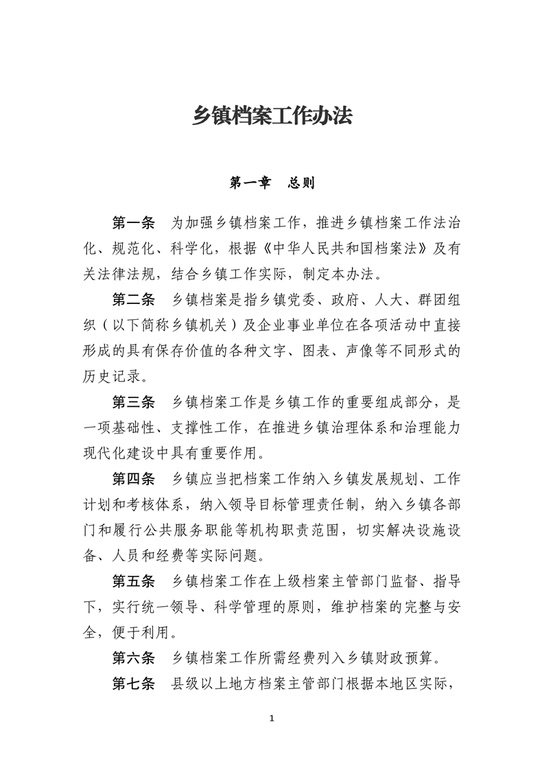 乡镇档案工作办法