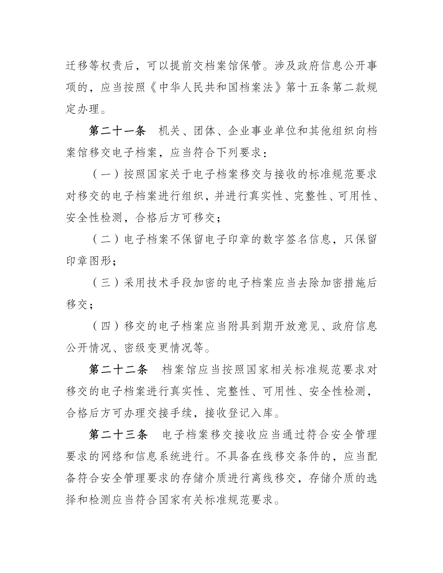 日前,国家档案局令第22号公布《电子档案管理办法》(以下简称《办法》),自2024年11月1日起施行。《办法》就进一步加强和规范电子档案管理工作,确保电子档案真实、完整、可用、安全,对电子档案全过程管理提出规范要求。
