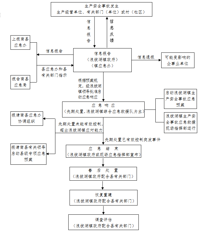 2.统一领导,属地为主。在浪拔湖镇党委、政府的领导下,浪拔湖镇应急指挥部负责生产安全事故应急处置工作,浪拔湖镇生产安全事故应急救援现场指挥部(简称浪拔湖镇现场指挥部)负责具体实施。