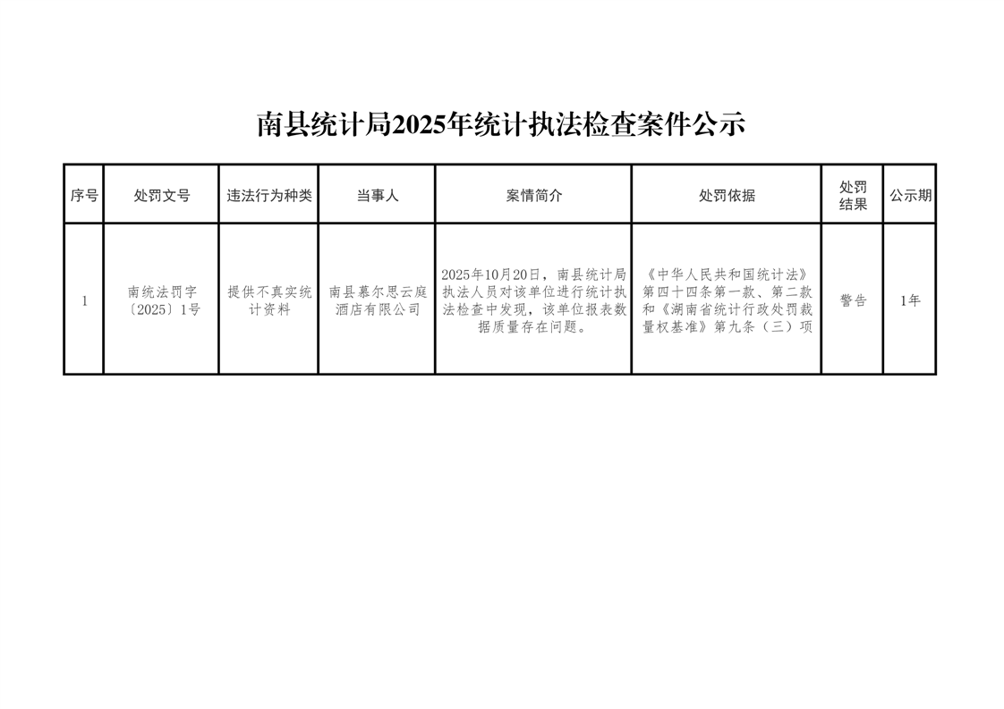 南县统计局2025年统计执法检查案件公示