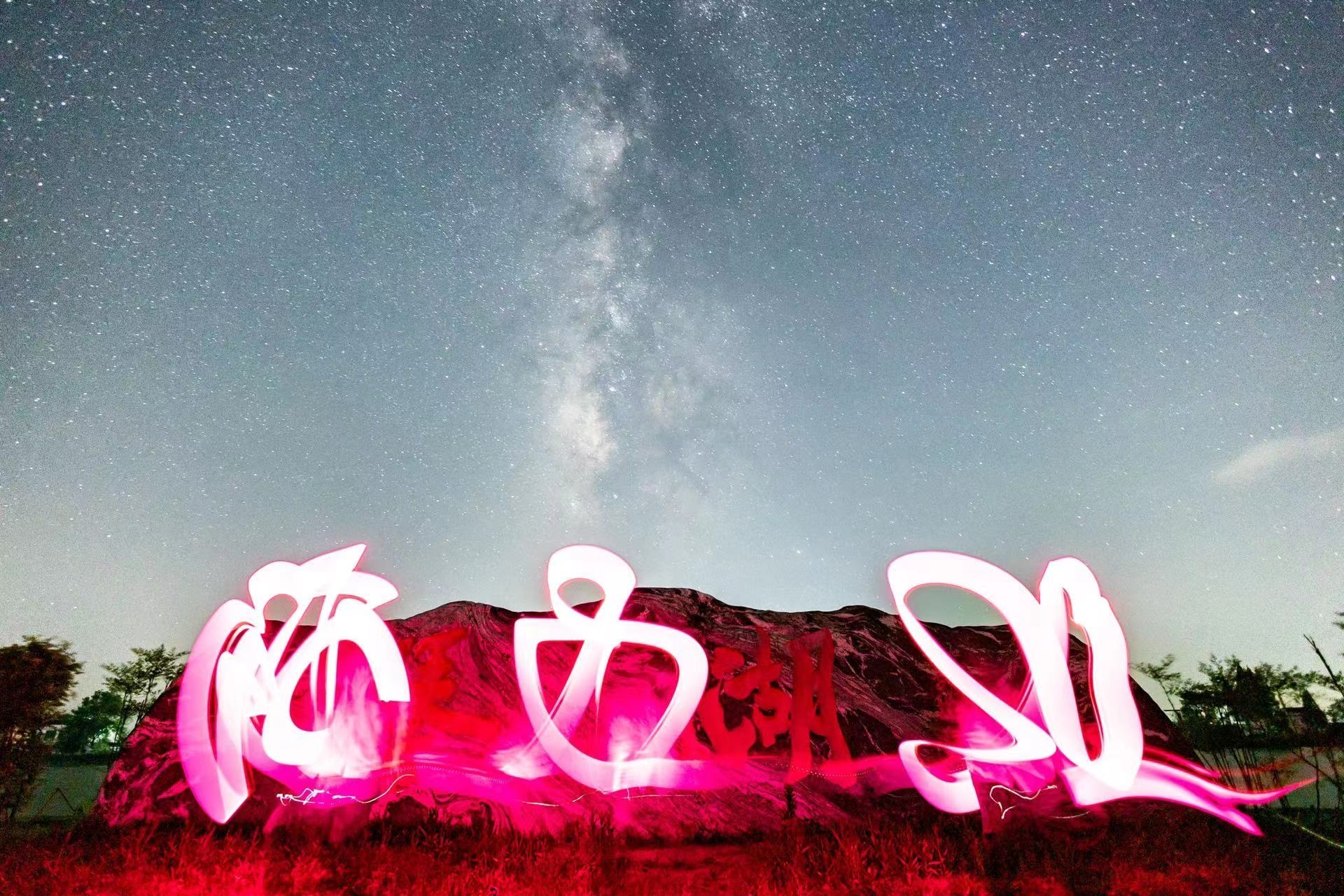 置身苍穹之下,抬头仰望星空,银河似从天空奔流而下。