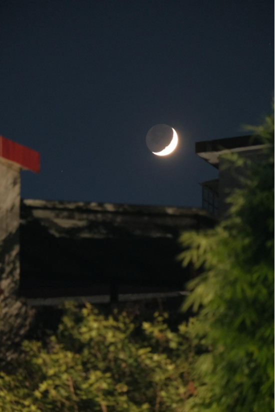 月明风清,与农舍人家、青葱树木相映成趣,好一个浪漫之夜。
