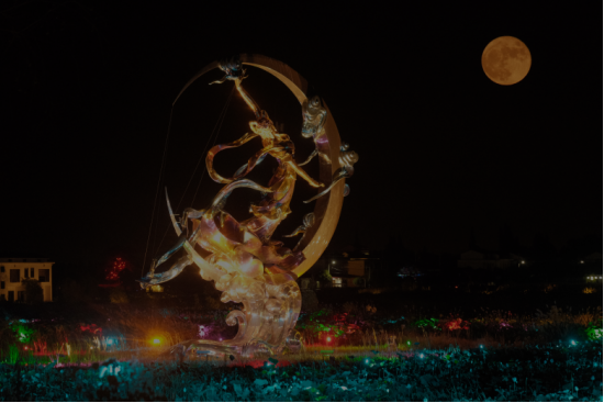 初秋静夜,月亮皎洁如盘,柔和的月光洒在“洞庭龙女”上,静谧而安详。