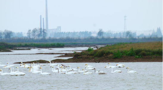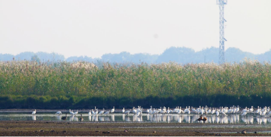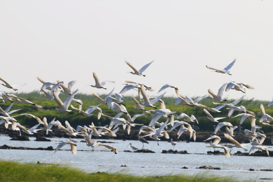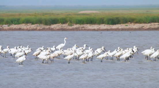 体态轻盈、洁白如雪的白琵鹭聚集栖息于此,为湿地增添了一抹活力与生机。
