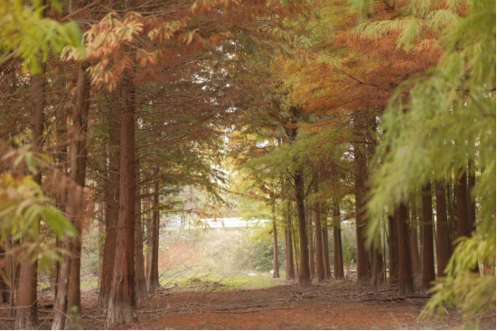 水杉树形秀丽,笔直挺拔,如仪仗队,一排排、一行行,肃穆端庄。