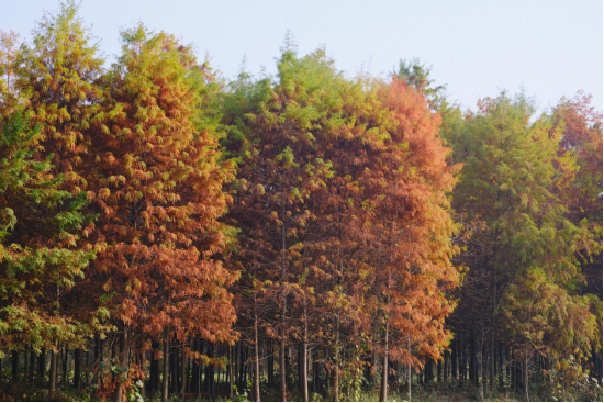 冬日,落羽杉进入最佳观赏期,高大挺拔,叶色绚丽,瑰丽无比。