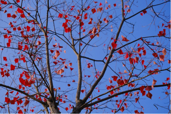 满树的叶片红得浓烈而又绚烂,成为一道亮丽的风景,展示着冬日里的无限生机。