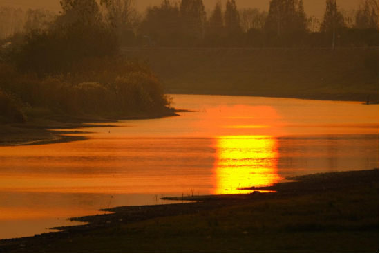 夕阳照在水面上,波光粼粼,似一颗颗神奇的小星星闪闪发光,衬托出梦幻般的色彩。