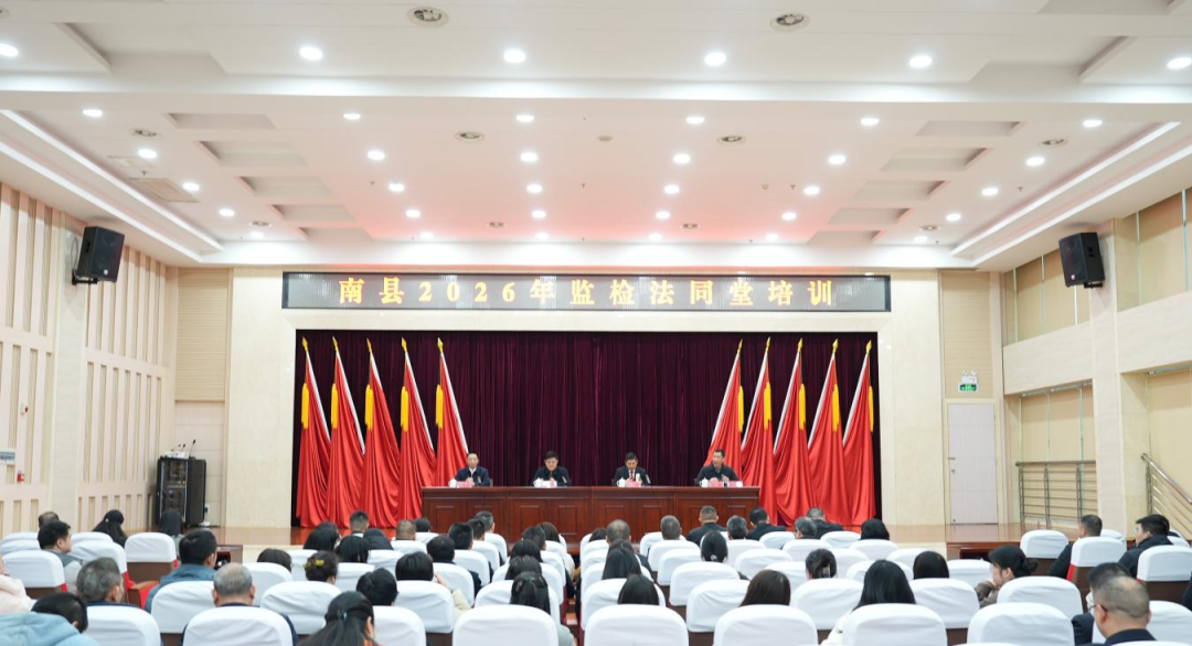 为深入贯彻习近平法治思想,加快构建贯通协同的监督体系、提升基层监督治理效能。3月18日,南县举办2026年监检法同堂培训班。县委常委、县纪委书记、县监委主任胡杰,县人民法院党组书记、院长丁杰,县人民检察院党组书记、检察长丁益良出席培训。