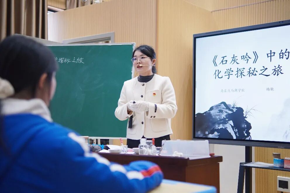 洗马湖学校的杨艳老师以《石灰吟》中的化学探秘为授课内容,紧扣化学学科实验探究与原理分析的特色,通过设计化学实验演示、清廉典故与化学知识结合的互动问答,将“清廉”寓意融入化学变化的原理讲解中,用鲜活的实验案例、亲切的语言引导学生从化学学科视角思考廉洁的本质与价值,将“清廉”二字润物细无声地植入学生心间,赢得了评委与观摩教师的一致好评。