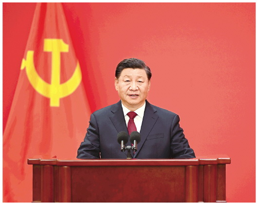习近平指出,经过全党全国各族人民共同努力,我们如期全面建成小康社会、实现了第一个百年奋斗目标。现在,我们正意气风发迈上全面建设社会主义现代化国家新征程,向第二个百年奋斗目标进军,以中国式现代化全面推进中华民族伟大复兴。